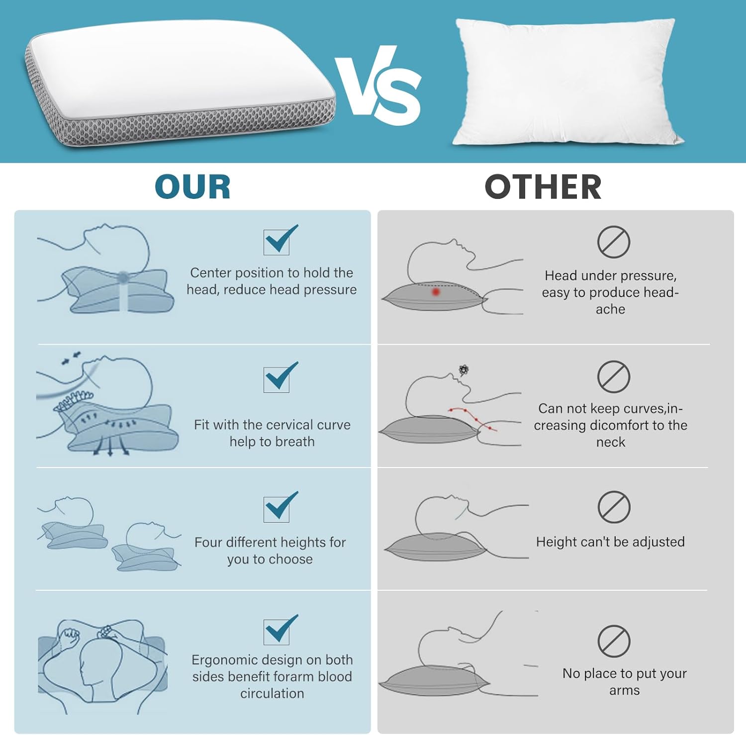 🎁【Great Gift Choice】 Our pillow effectively prevents cervical vertebrae problems and helps reduce sleepless nights. Perfect gift choice for dad, mom, girlfriends, boyfriends, husbands, wife & colleagues, older women, birthdays, and New Year gifts. Elevate your loved ones’ sleep experience with our best pillows for sleeping.