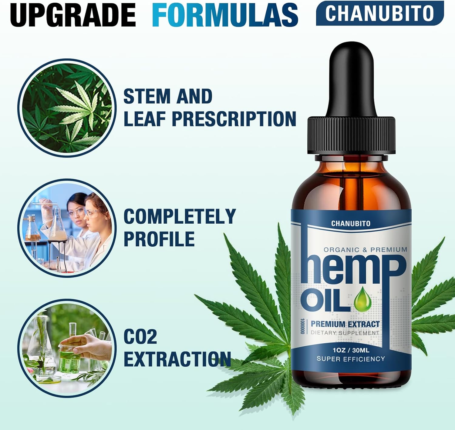 ✅ORGANICALLY GROWN HEMP: Every drop hemp oil of CHANUBITO is packed with pure natural hemp extract which celected from Colorado, Premium quality efficiently satisfying your needs.
