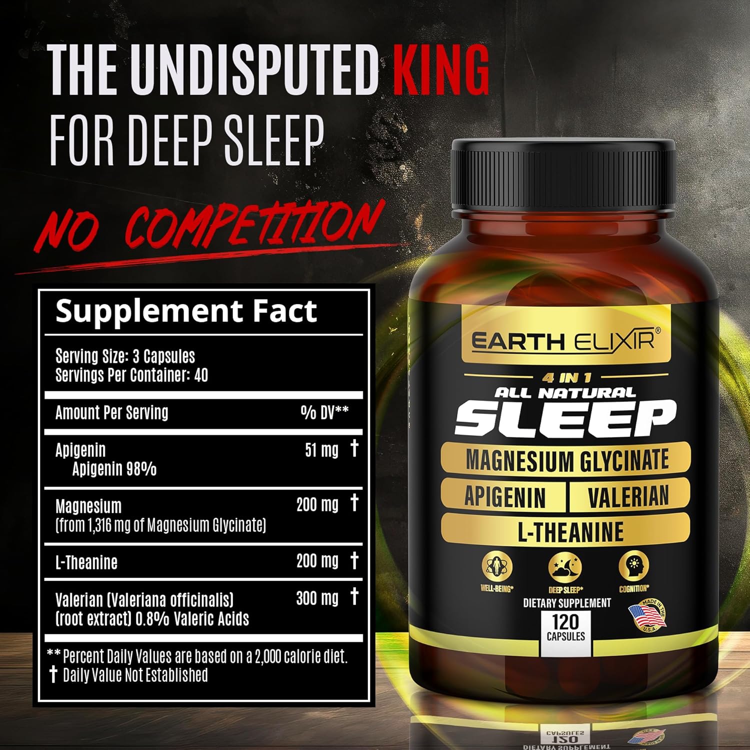 💤 FEEL FULLY RESTED – Get the consistently deep and refreshing sleep you deserve with Earth Elixir Sleep Supplements for Adults and kids. Our sleeping aid supplement provides essential nutrition containing apigenin 50mg, magnesium glycinate 200mg (superior than magnesium l threonate for sleep), l-theanine 250mg, and valerian root 250 mg capsules for restful sleep throughout the night.
