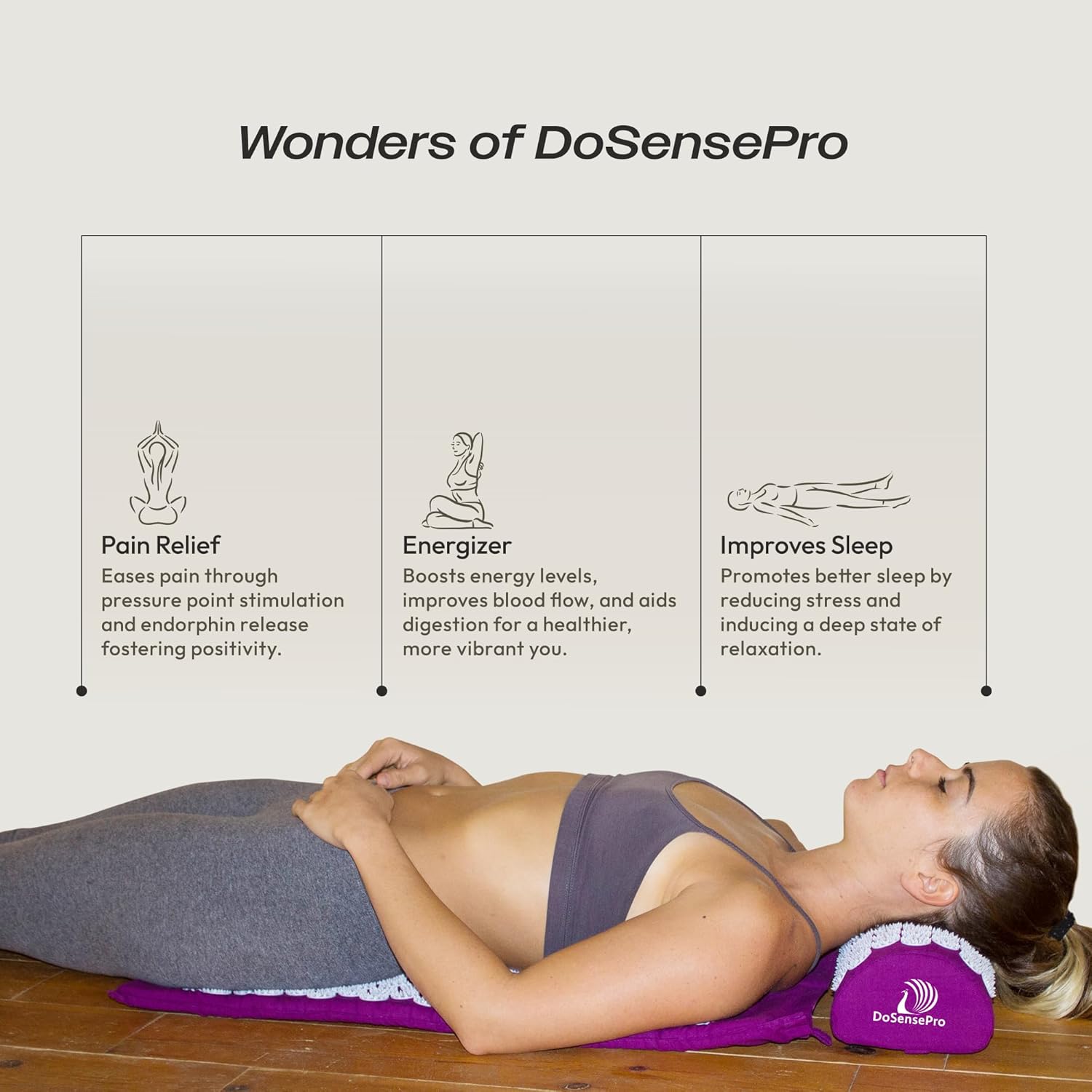 SWIFT PAIN RELIEF: Experience immediate relief from headaches, neck, and lower back pain with the DoSensePro acupressure mat and pillow set. A premium solution for sleep issues and chronic pain.SWIFT