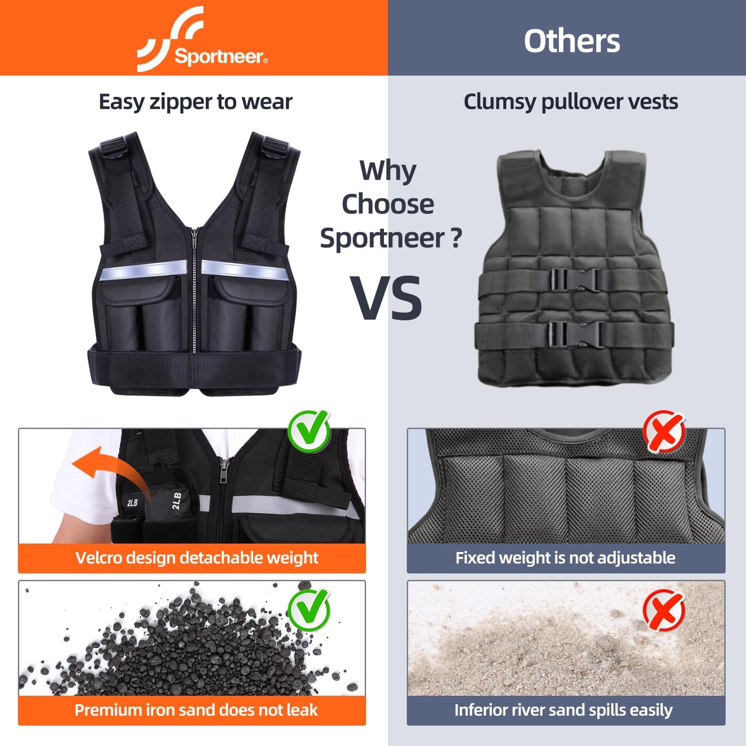 Zipper Wearable Design: Sportneer adjustable weighted vest for men and women is designed with a convenient zipper, making it easy to wear and take off. It provides a comfortable and body-friendly fit, especially for women, saving you time and enhancing your exercise efficiency