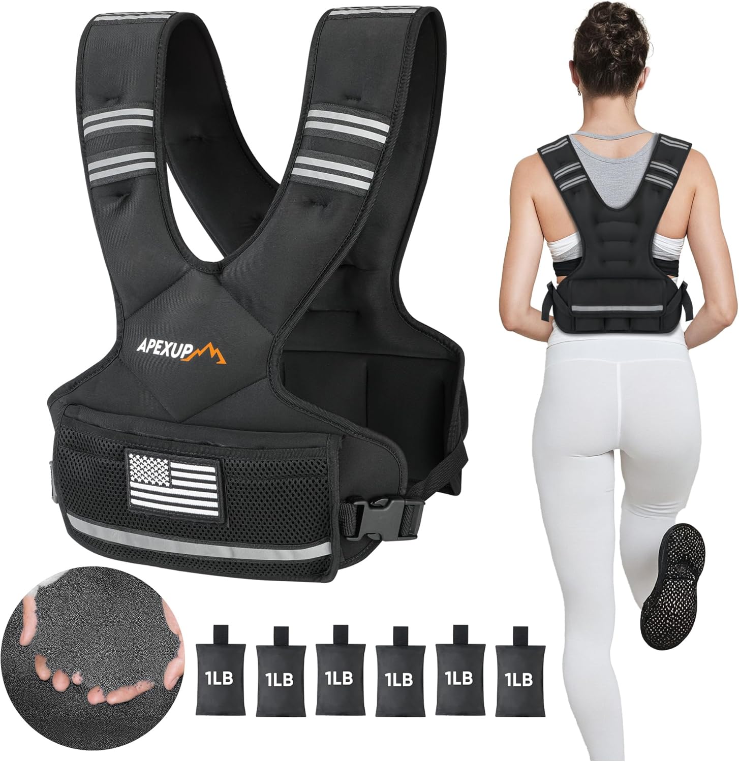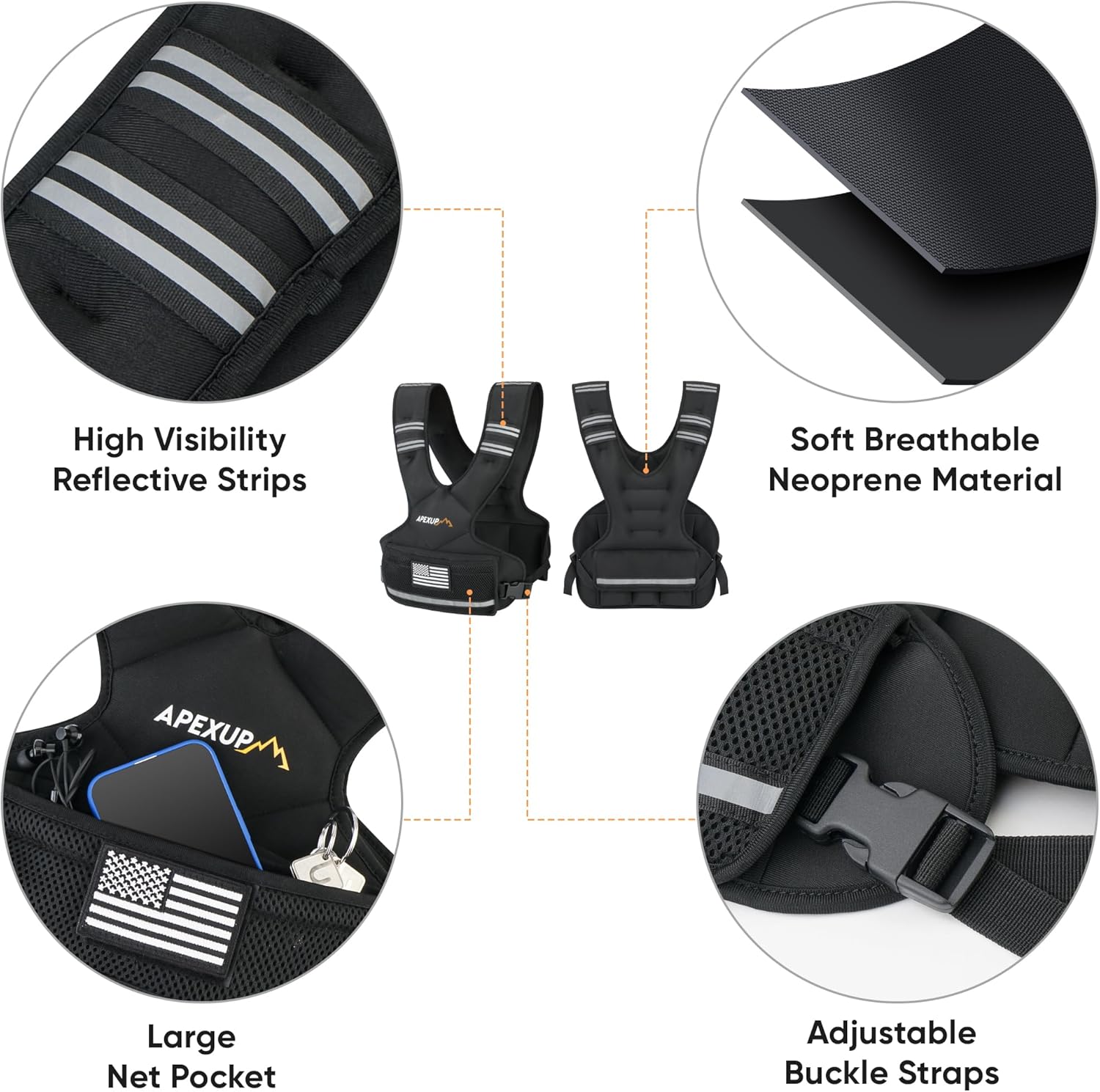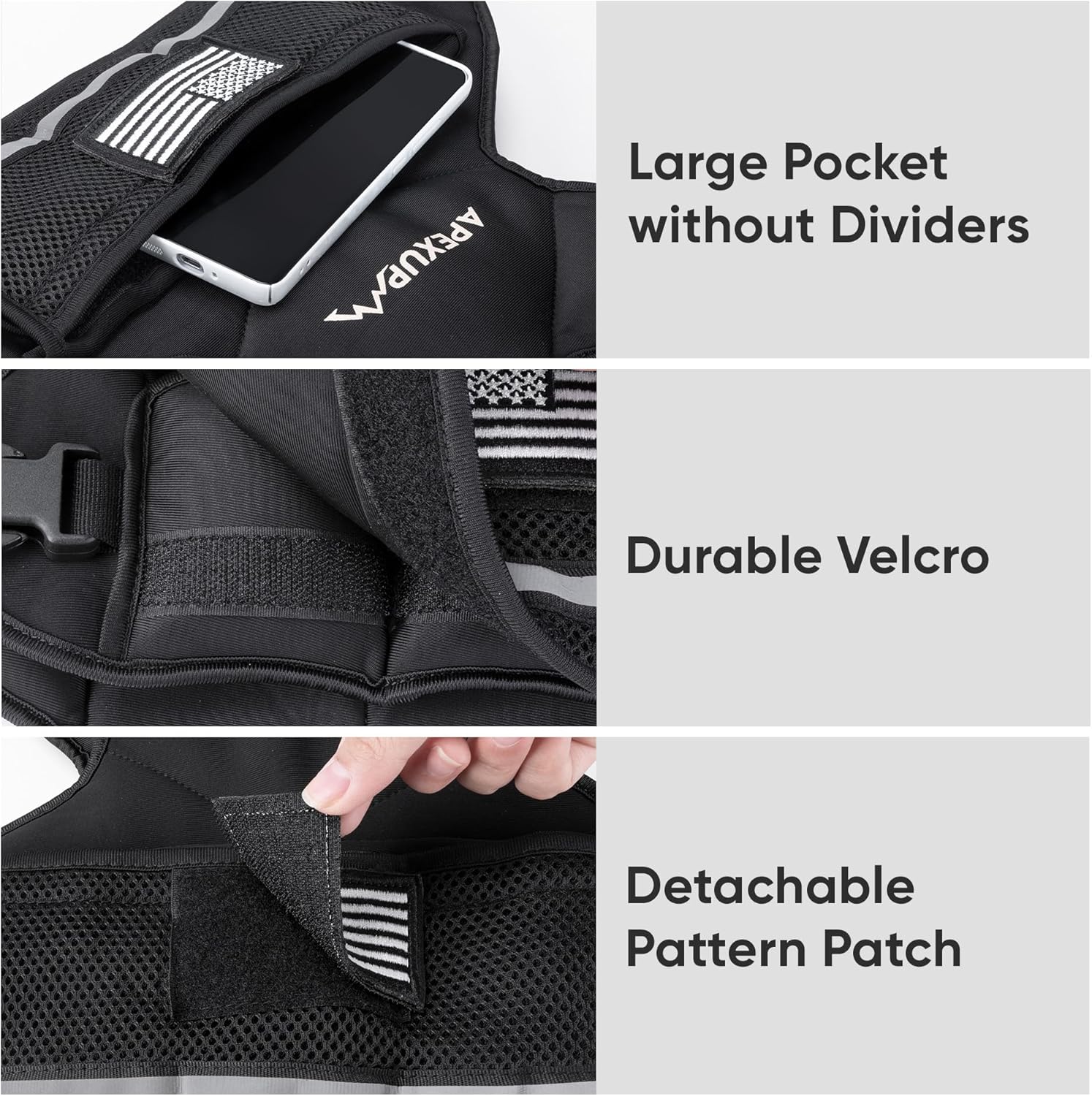 [ADJUSTABLE WEIGHTED VEST] APEXUP adjustable weighted vest has a base self-weight and comes with 6 sandbags, allowing you to adjust the weight according to your needs and saving you the trouble of buying multiple vests. Choose from 3 weight ranges based on your training stage, 4-10 pounds, 12-18 pounds, and 20-32 pounds.