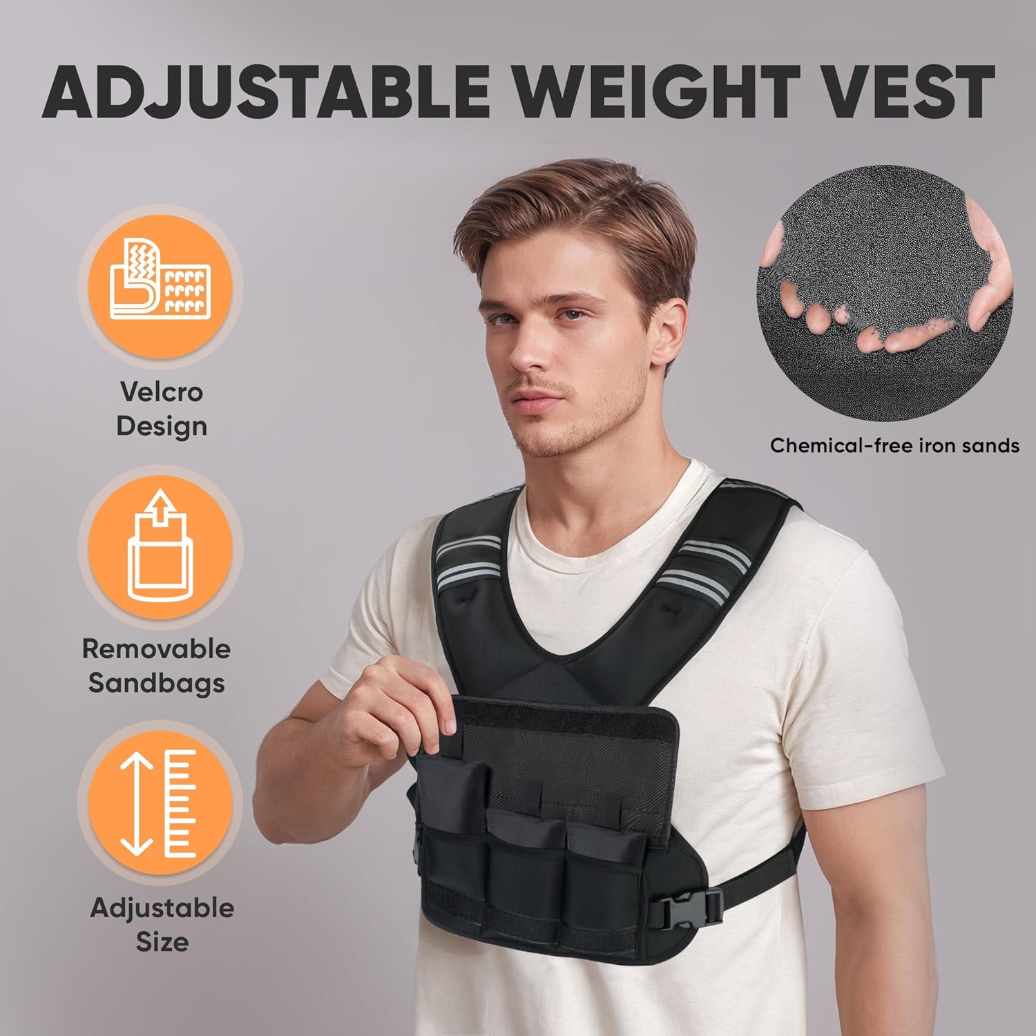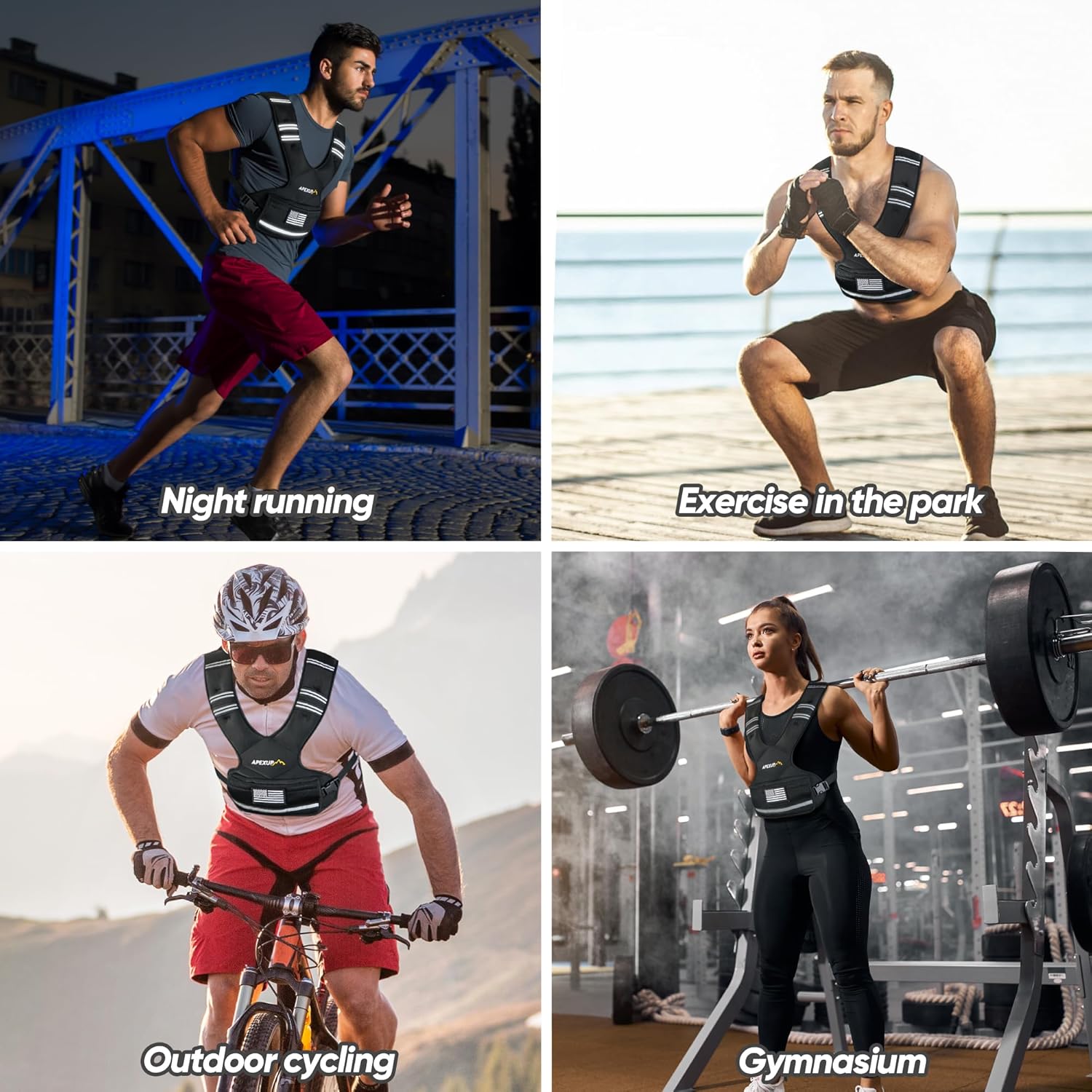[SAFE AND DURABLE] Made of high-quality soft neoprene and filled with iron sand for even weight distribution, this weight vest reduces the risk of discomfort or injury caused by concentrated weight. It features reinforced stitching and reflective straps to enhance durability and visibility during outdoor workouts.