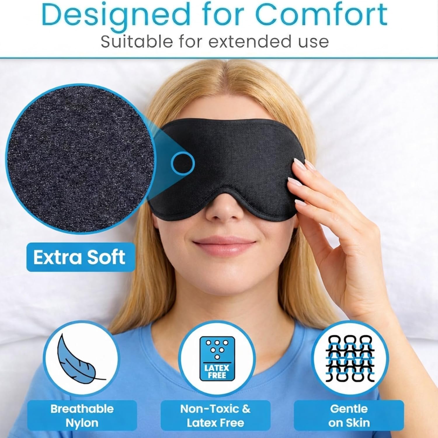 CONTOURED FOR COMFORT: The ergonomic eye cups are carefully contoured to fit the natural shape of the face. They block out light effectively while preventing direct pressure on the eyes. This design ensures targeted relief and comfort for extended use.