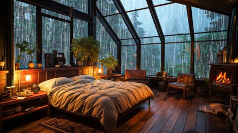 Cozy Cabin Ambience – Rain and Fireplace Sounds at Night 8 Hours for Sleeping, Reading, Relaxation