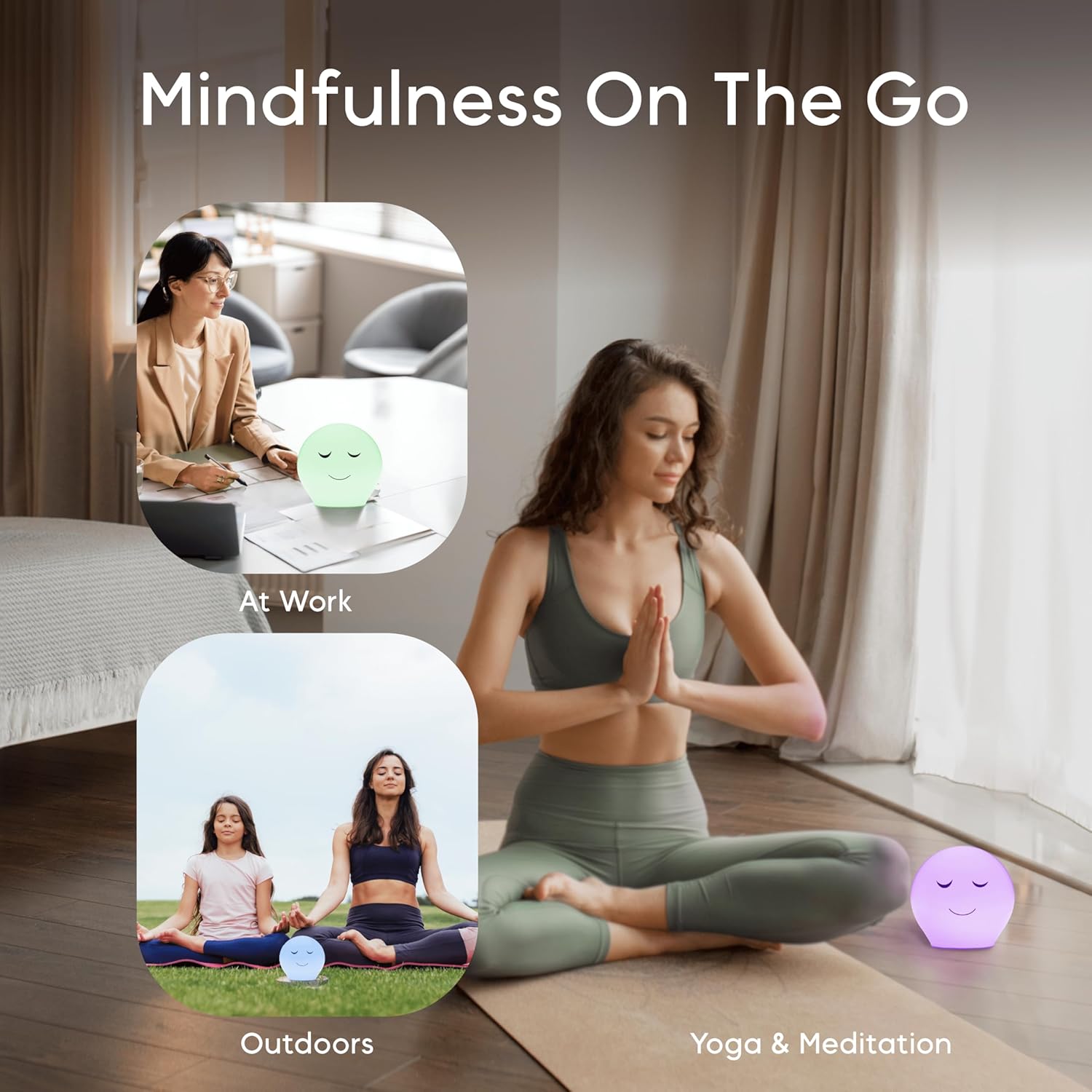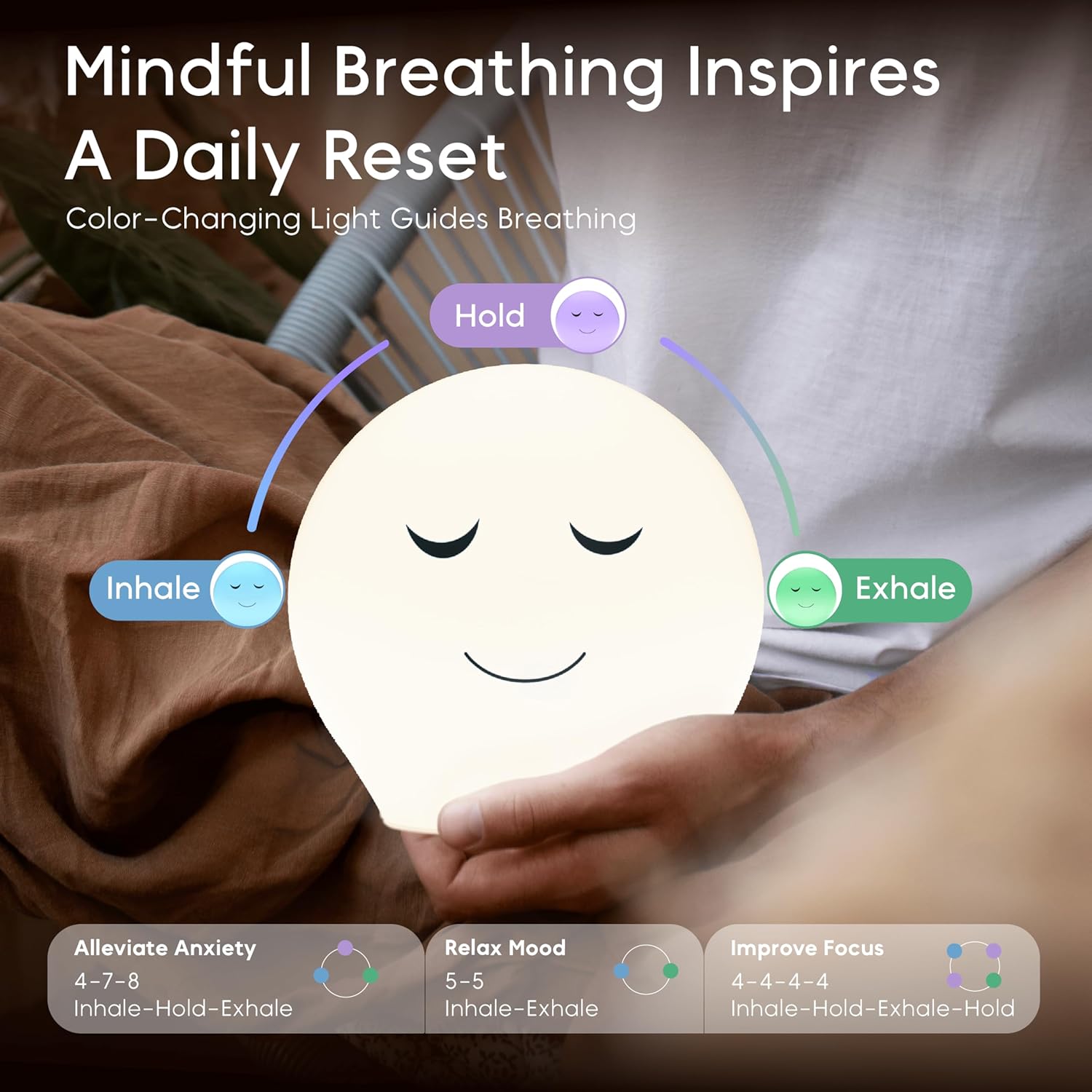 3 Breathing Exercises – Whether you’re looking to relax, focus, or sleep, our device offers three effective breathing techniques to suit your needs. Choose from the 4-7-8 breathing for alleviating anxiety relief, the 4-4-4-4 Box Breathing for heighten focus, or the 5-5 breathing for relaxing mood. Each mode guides you through the breathing pattern with intuitive light cues, making it easy to achieve mindfulness.