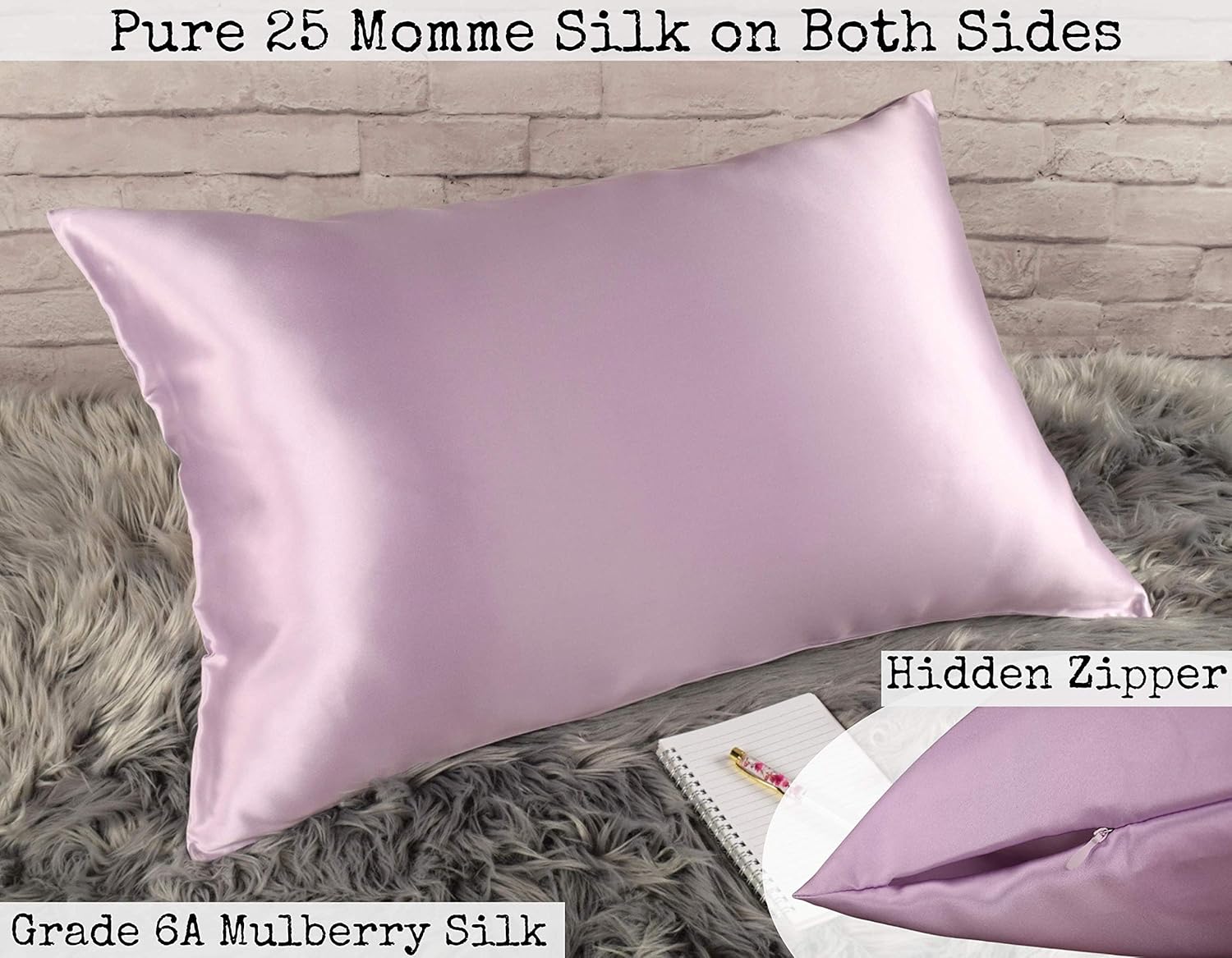 Silk on both sides – 25 momme (mm) contains 35% more silk per square inch. Made with Grade 6A mulberry silk – the highest quality silk available. Charmeuse weave for a soft luxurious feel. Oeko-Tex Standard 100 Certified
