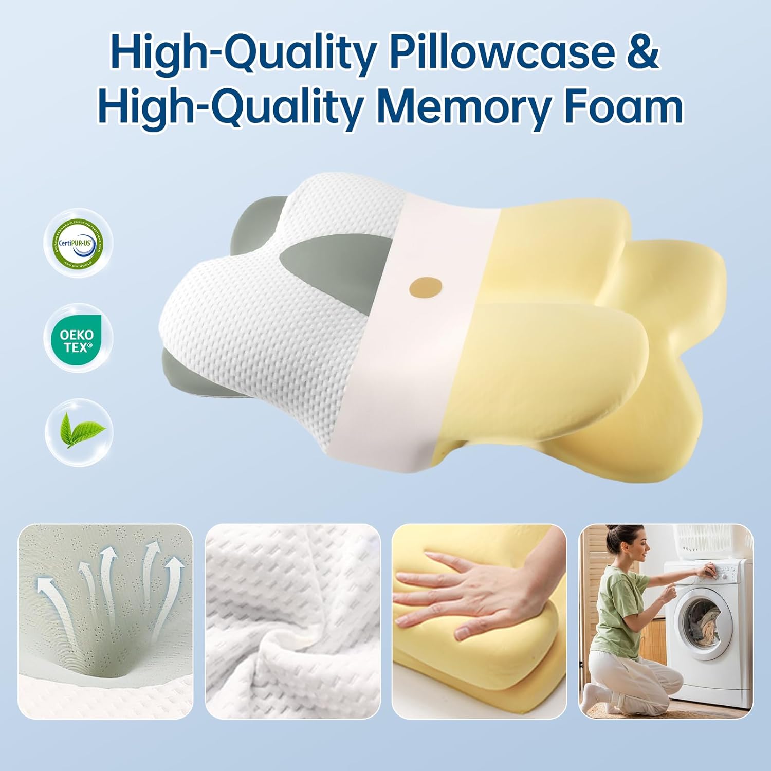 【NASA-Inspired Memory Foam】Featuring CertiPUR-US & Oeko-Tex certified slow-recovery foam, it delivers perfect softness-support balance. Inspired by aerospace technology, it cradles your head/neck for “soft landing” pressure relief and sustained deep sleep.