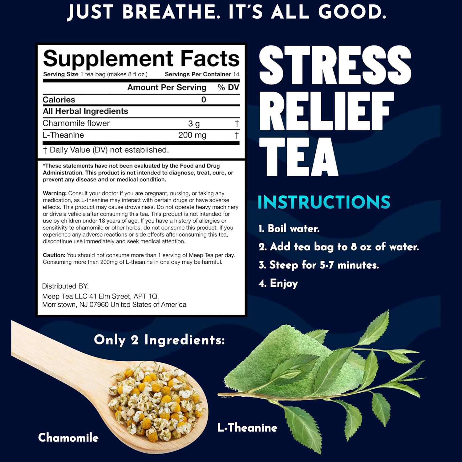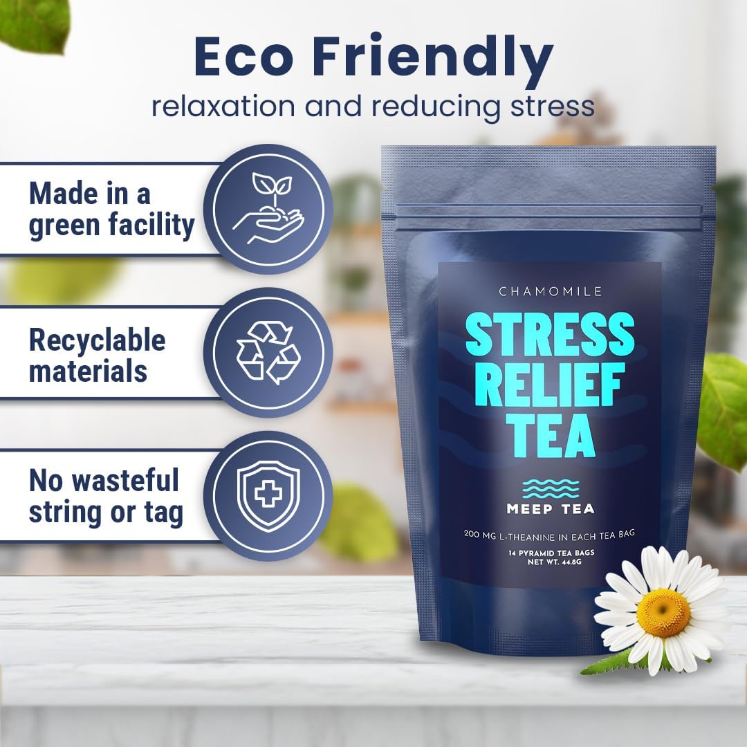 Mood Enhancement: Each stress relief tea bag contains 200mg of L Theanine, a natural amino acid known for promoting relaxation and reducing stress. It has been also known to increase focus and mental clarity