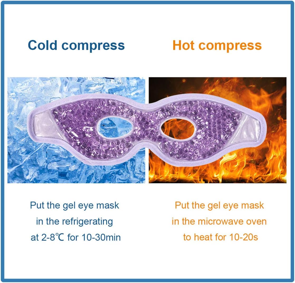 Cold Hot Compress: Using the principle of physical therapy, wearing the gel eye mask after heating or cooling for 8-15min to help you relieve fatigue and stress. For cold therapy,place it in the refrigerator for about 1-2h; for heat therapy, place it in a microwave oven and heat it for 10-20s.