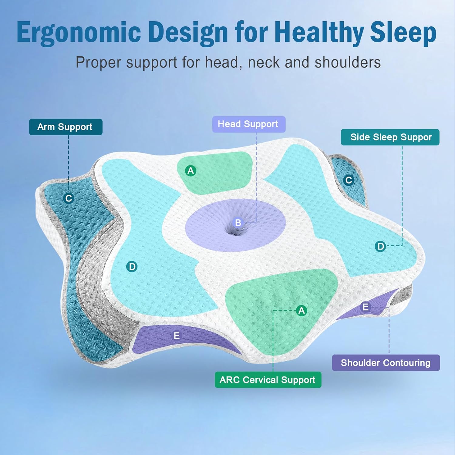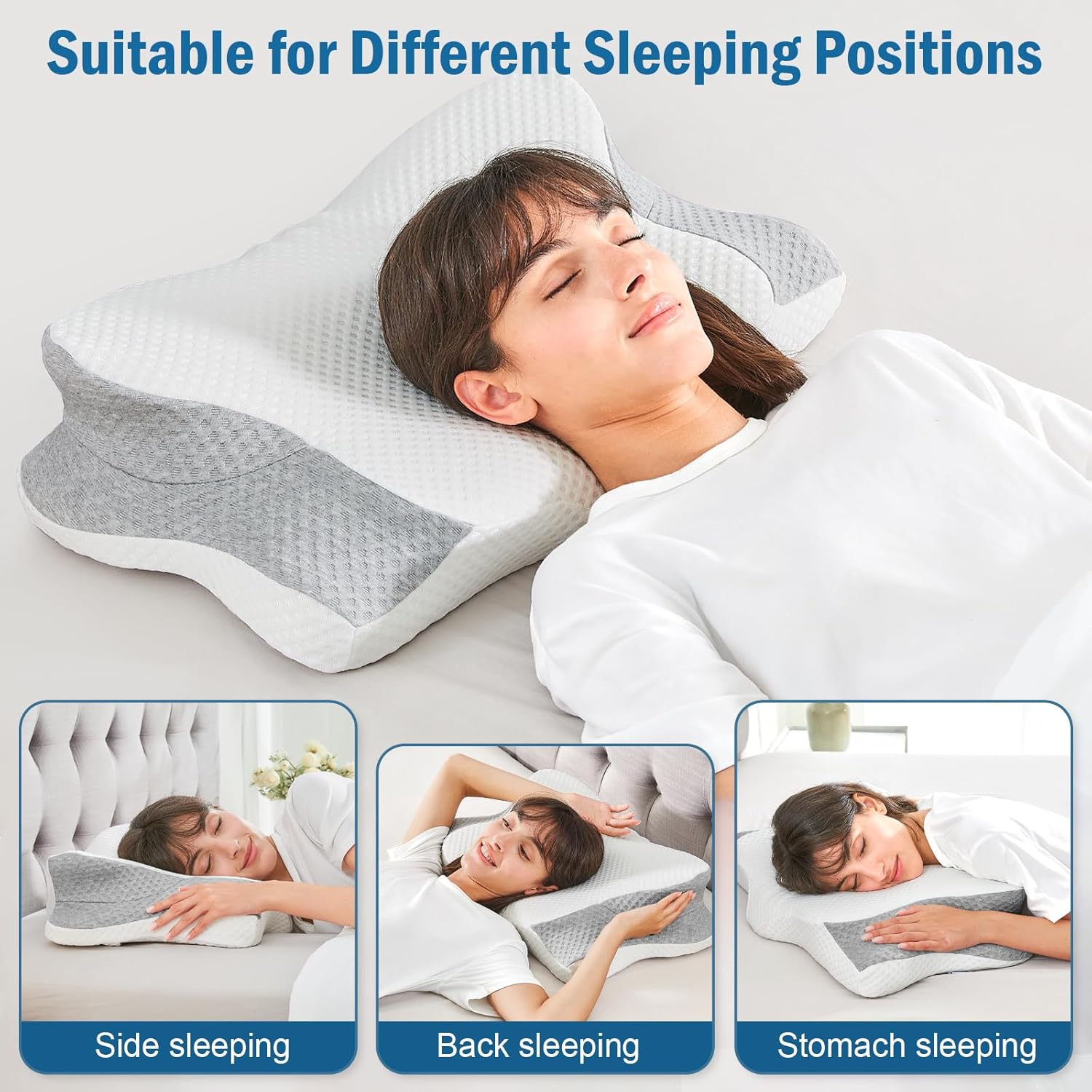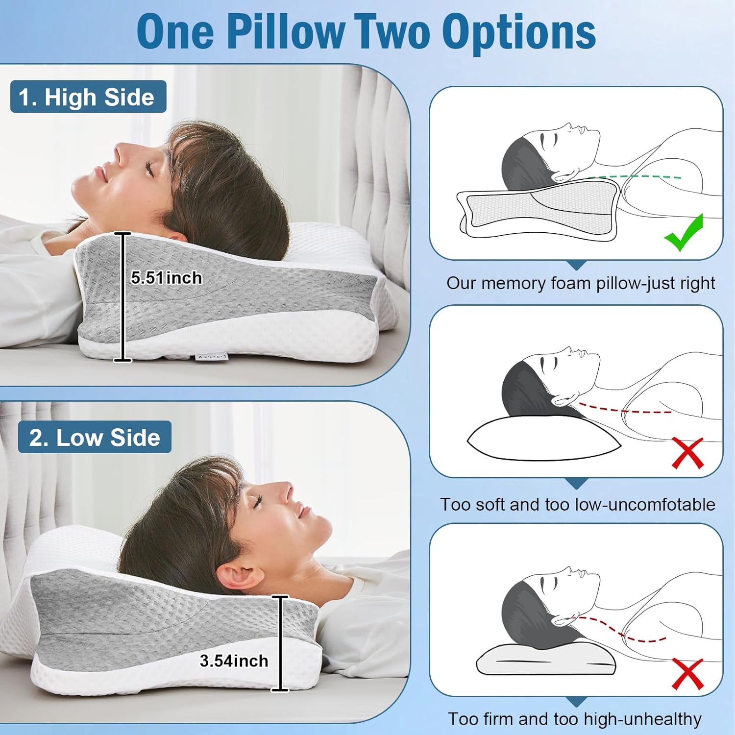 Adjustable 2 Heights and Armrest Design: When you still can’t find the right height of pillow, our cervical neck pillow has 2 different heights on both sides for you to choose, so that you can choose the ergonomic pillow that is more suitable for your sleeping position. On top of that, you can add or remove cervica pillow inserts to achieve the perfect height.This orthopedic pillow is suitable for a variety of sleeping positions, such as prone, supine and side sleeper.