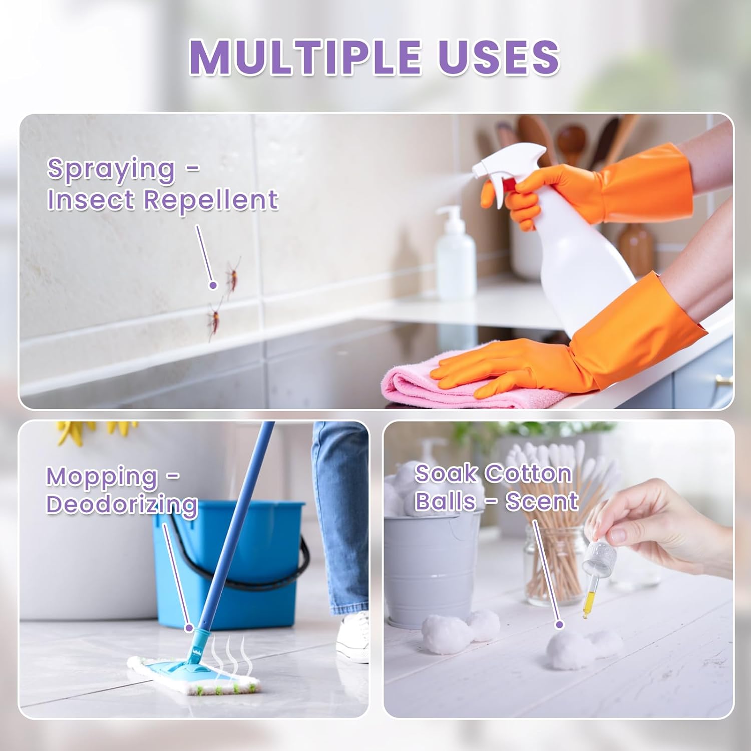 Versatile Use: Our lavender essential oil can be used in a wide variety of ways, such as making a spray to repel insects, adding drops of lavender essential oil to cotton balls or towels as a scent, and cleaning and de-miting mites