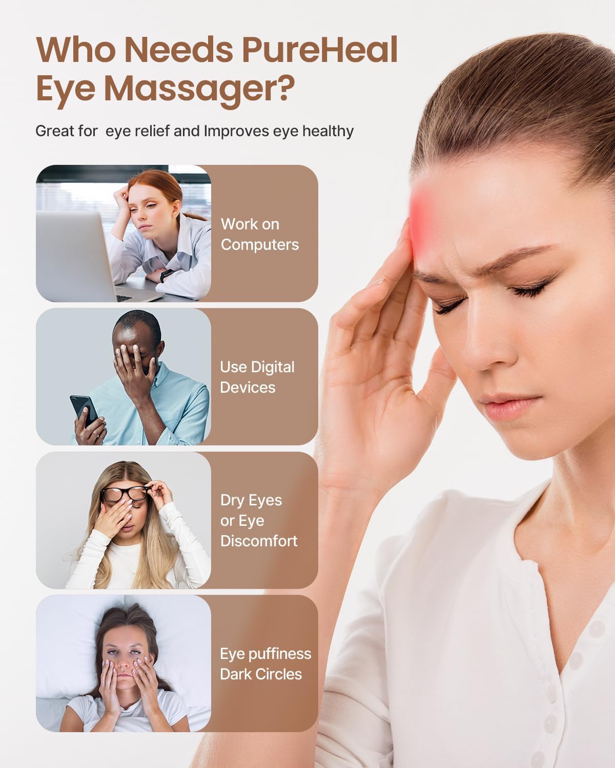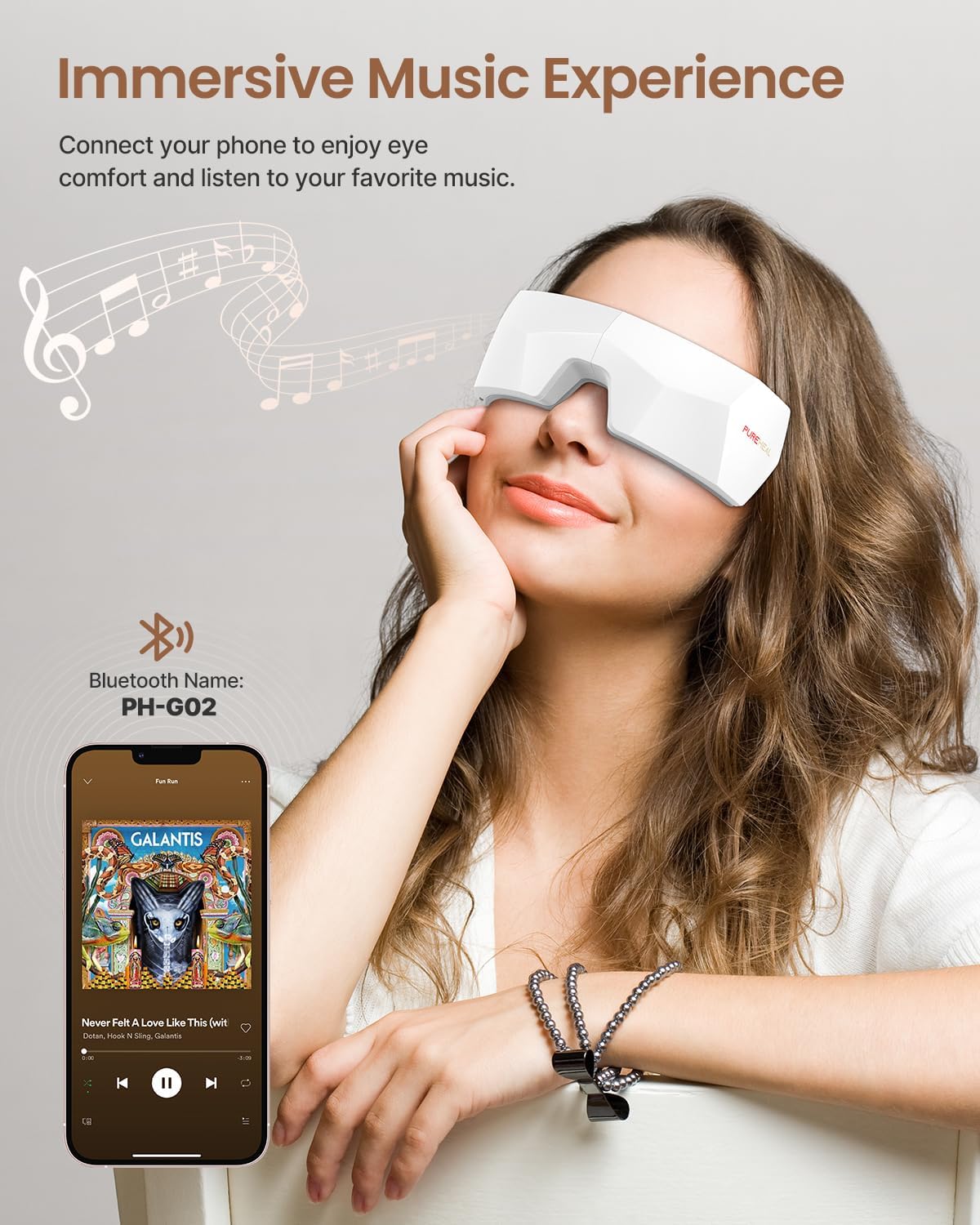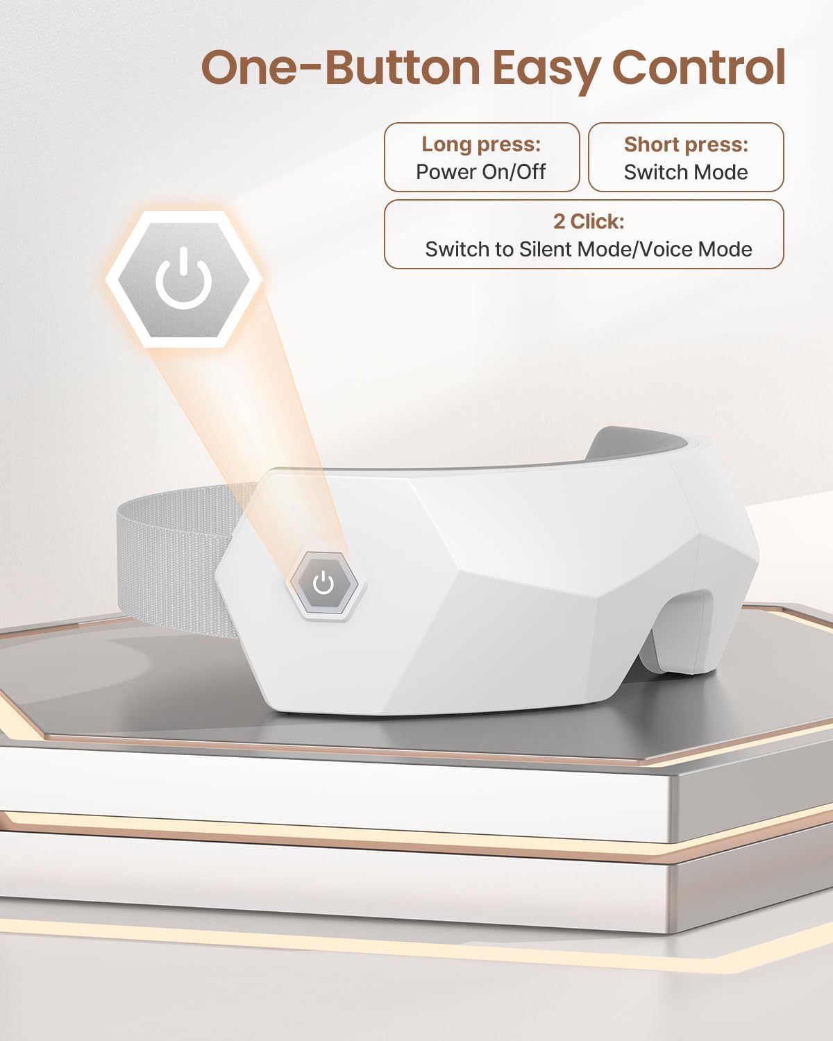 Customizable Comfort for Anniversary Gifts: Choose from 5 adjustable massage modes to personalize your comfort along with a heating mode that warms a heating pad around your eyes and temples to 113℉ (45℃). as comfortable as applying a hot towel,Ideal for reducing eye strain, puffiness, and dark circles while improving sleep.