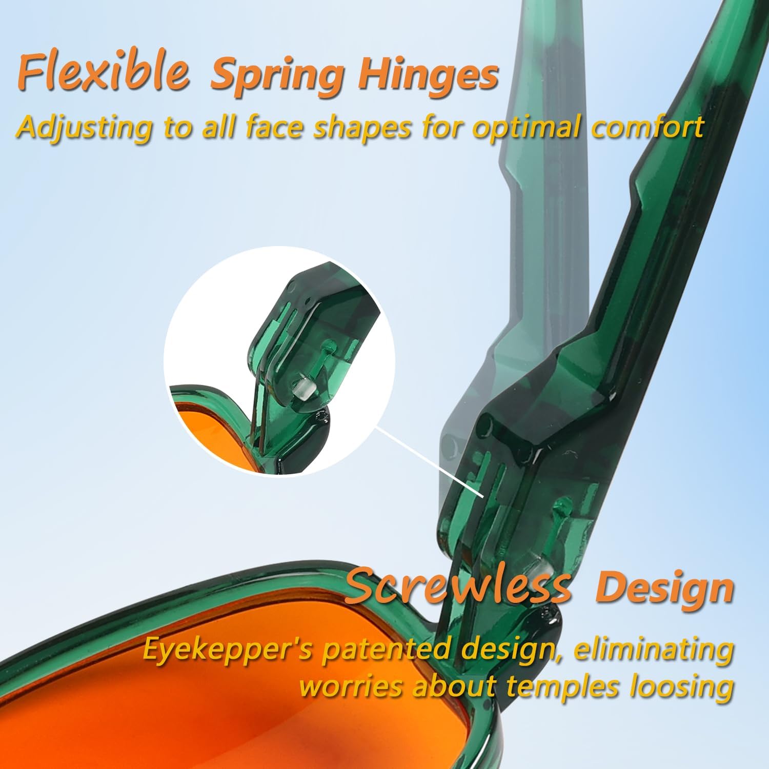 METALLESS & SCREWLESS SPRING HINGES blue light glasses feature Eyekepper’s latest patented design. These glasses offer a wearing experience unlike any other, combining the benefits of non-metal frames and screwless spring hinges.