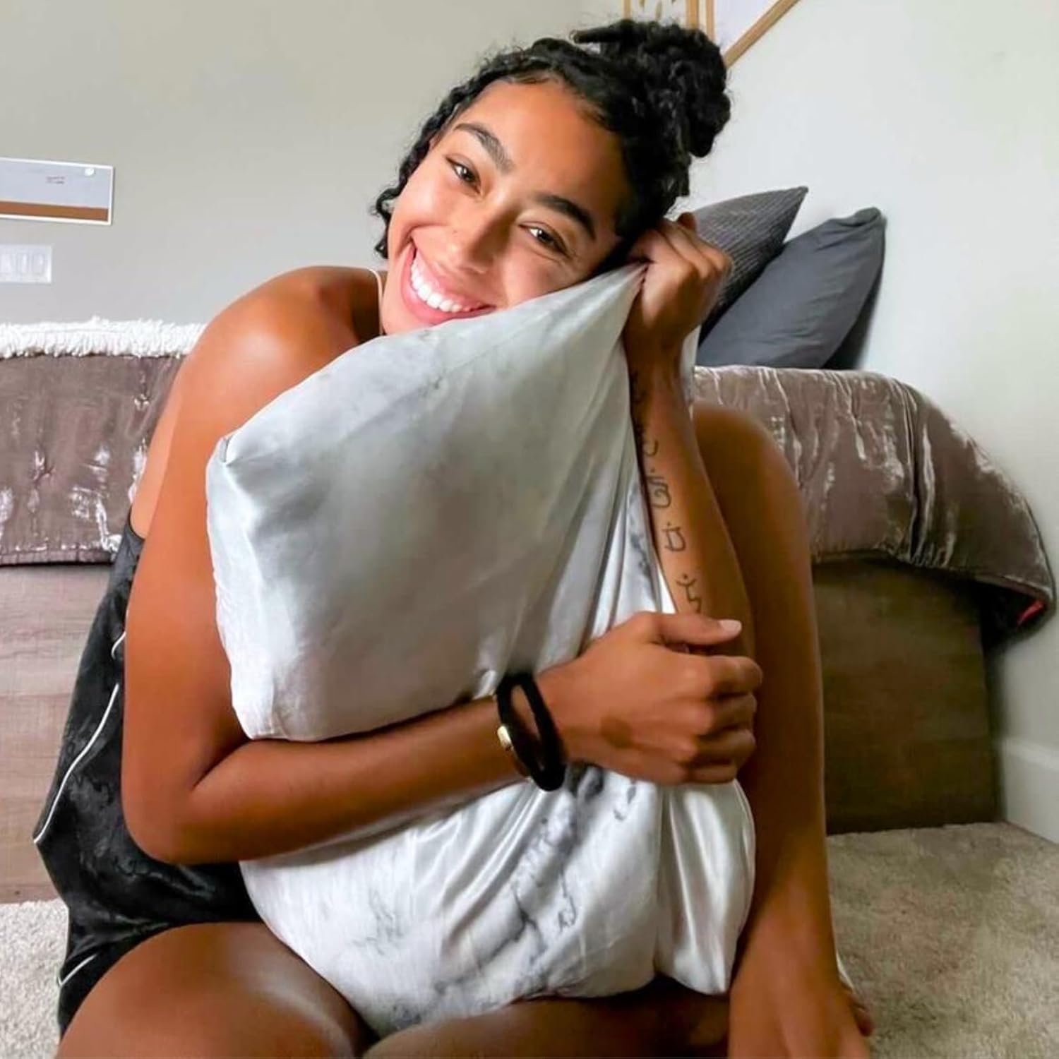 CRUELTY FREE VEGAN SILK PILLOWCASE- Fenrici pink marble satin pillowcase delivers the best of two worlds. Not only does satin fabric feel just as amazing as natural silk when you use it (some even say better as our satin is softer), but you can also feel good knowing that no silkworms were harmed in the making of this pillowcase.