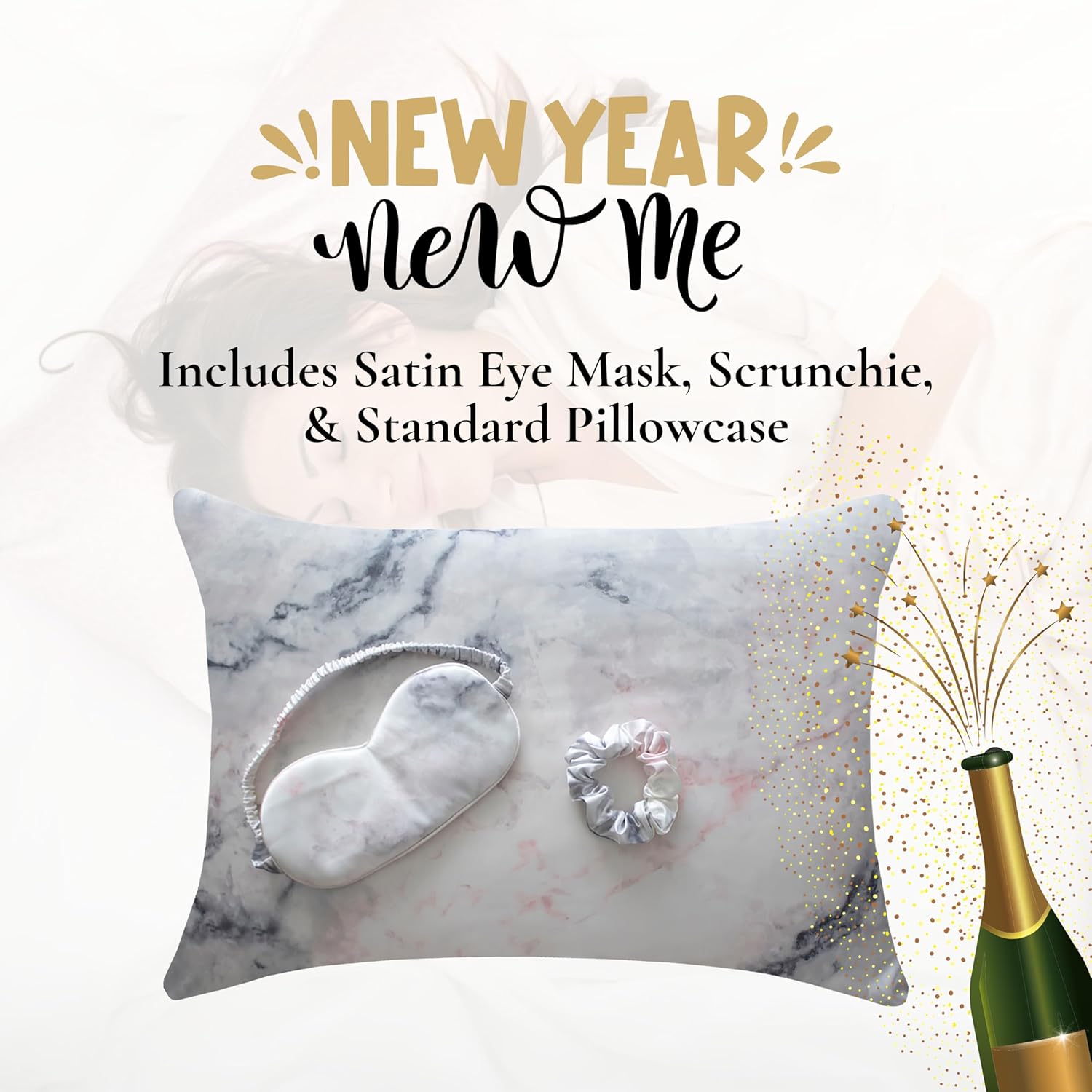 SATIN PILLOWCASE SET FOR SKIN AND HAIR – This 3-item beauty sleep set comes complete with one standard size satin pillowcase (26inchX20inch), satin eye mask, and matching scrunchie; everything needed to sleep well at home or during travel and wake up looking and feeling refreshed.
