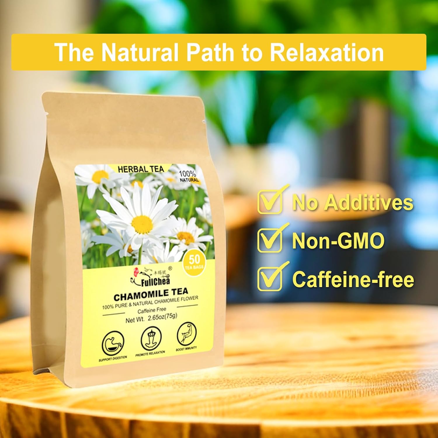 Enjoy Convenience: With 50 tea bags in a resealable pack, simply use one tea bag to enjoy a cup of healthy herbal tea. Our excellent packaging ensures freshness and readiness from the first to the last cup of chamomile tea.