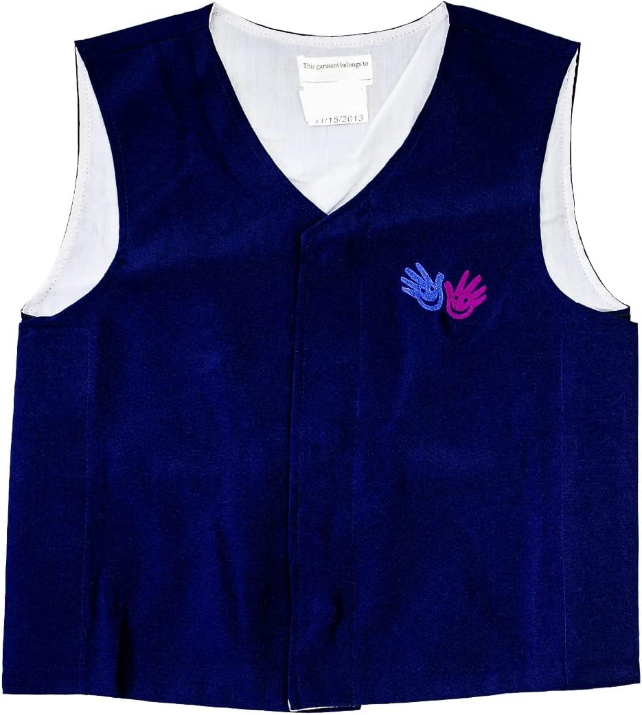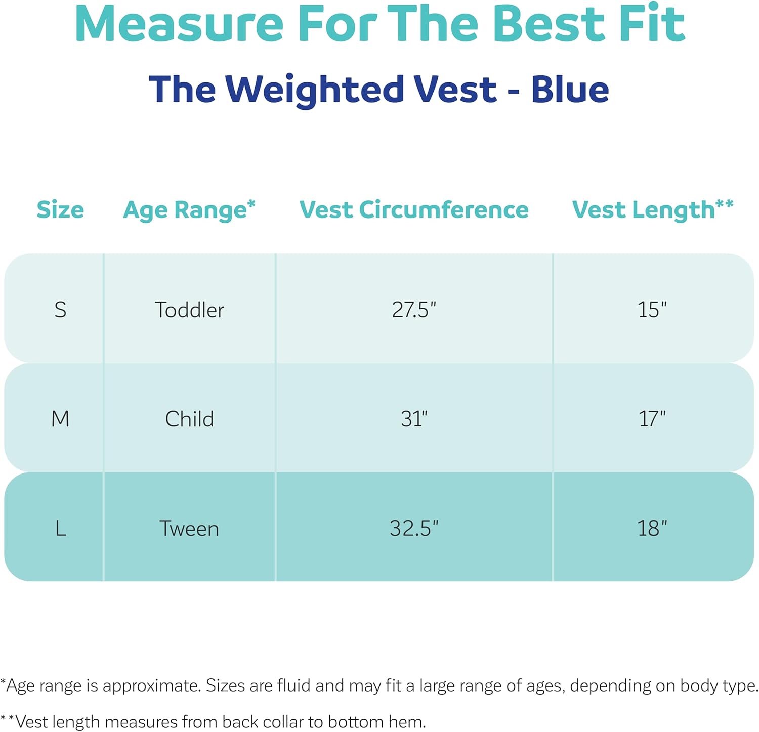 DETAILS: This child weighted vest comes in multiple sizes. Please refer to our sizing chart to determine the best fit. Color: Blue or Pink. Vest: 100% polyester. Machine wash. Air dry. Weights should be removed from vest before washing