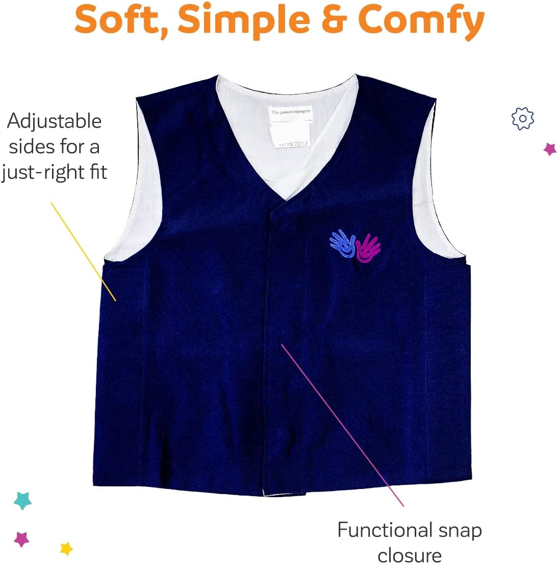 LIGHTWEIGHT & LAYERS WELL: Fits comfortably over clothing so kids can feel comfortable while getting the sensory input they need. The vest closes with functional front snaps and has adjustable hook-and-loop side closures to make a just-right fit!
