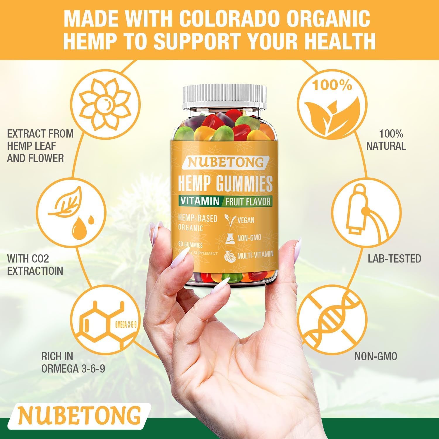 【1000000 Extract】Nubetong organic hemp gummies contain 1000000 pure hemp plant extract. Each hemp gummy for relief has the potency with essential fatty and vitamins to promote overall health, emotionally and physically.