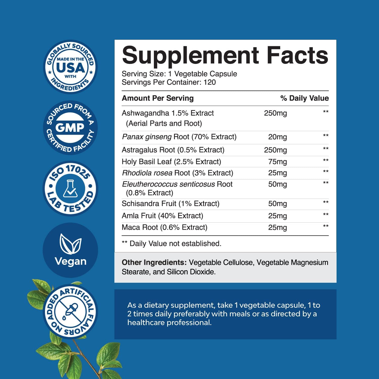 Clean Formula – We are proud to feature a wide range of globally sourced adaptogenic herbs in our vegan non-GMO formula that is made and tested in CGMP American labs for quality you can trust