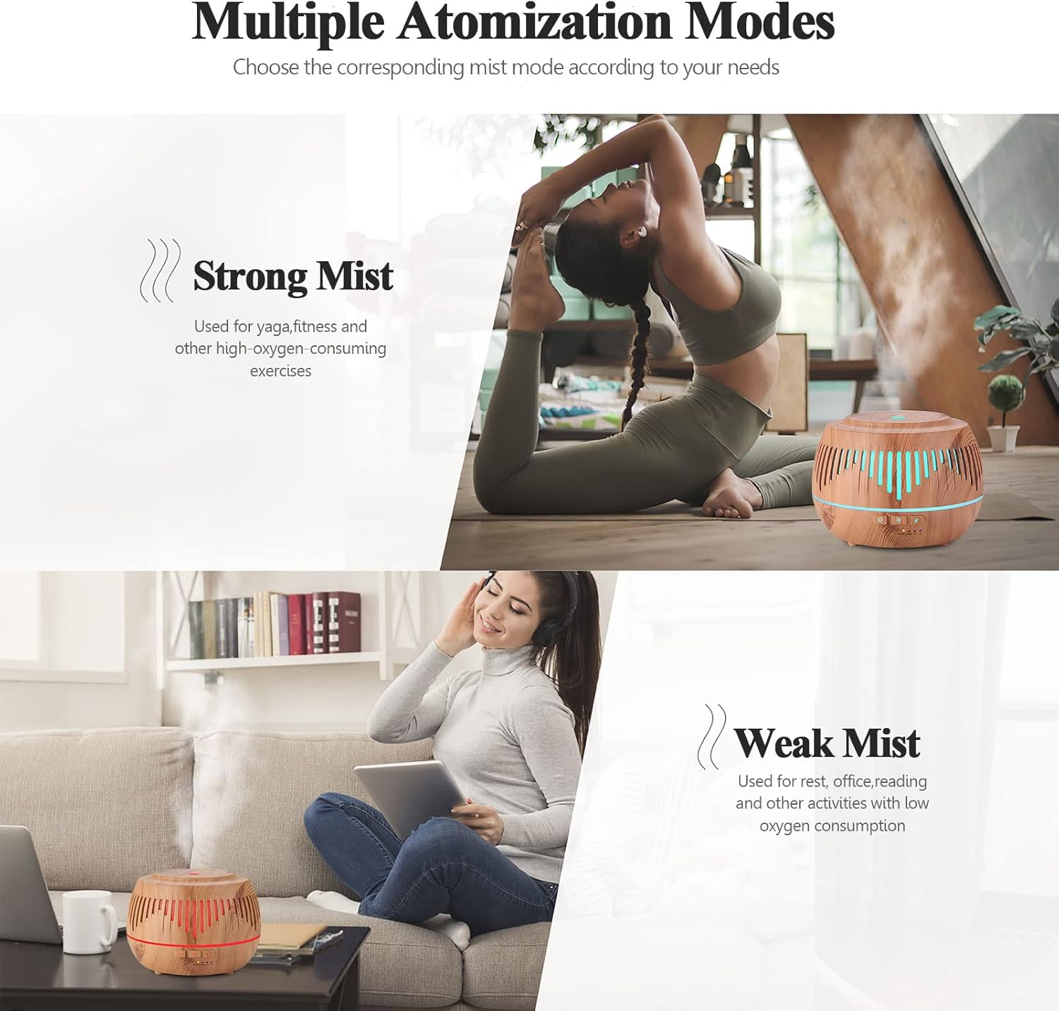 -The ultrasonic humidifiers compatible with essential oils,also work as aroma diffusers for essential oils.The powerful long-lasting mist help moisturize the dry air in room,improve sleep quality,moisturize skin alleviate the discomfort.Directly add several drops of essential oil,enjoy long-lasting fragrance,relax your mind immediately & fall asleep faster.