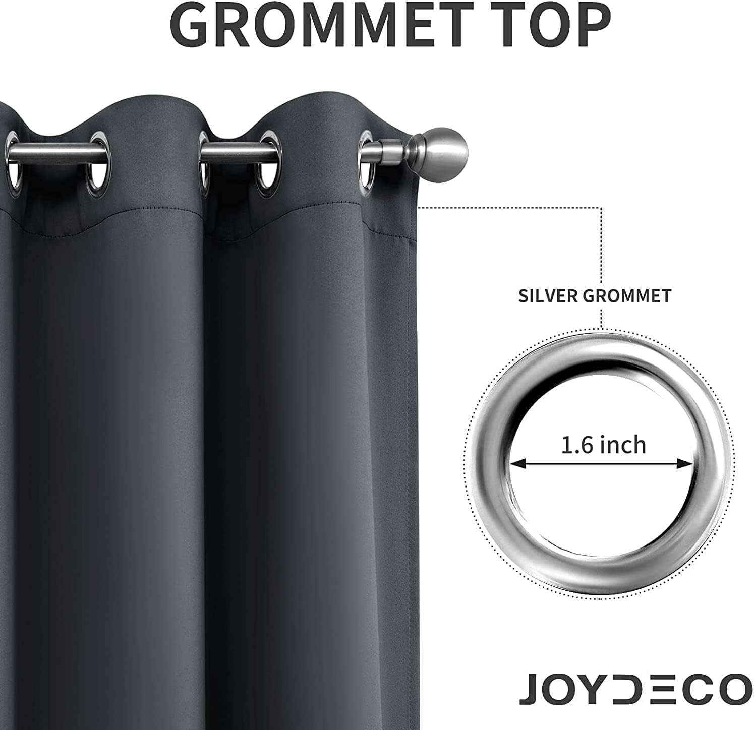 [MATERIAL]: Joydeco 2pcs grommet room darkening curtains for bedroom, solid thermal insulated living room blackout window panels are all made of 100% Polyester,machine washable,but please separately in a mesh bag, do not bleach,warm iron and tumble dry at low temperatures