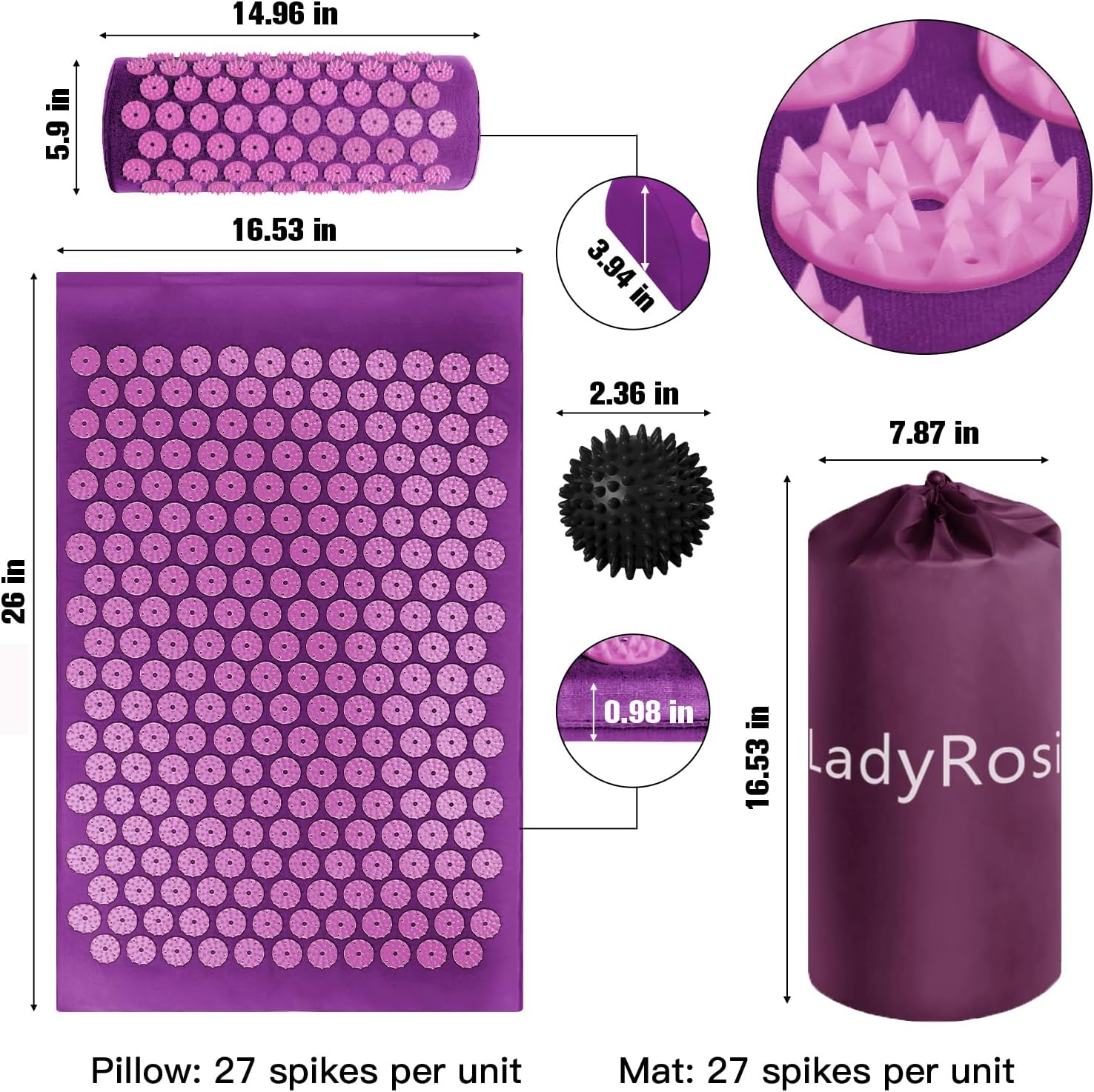 Package included: 1 x acupressure mat, 1 x pillow, 2 x acupressure ball, 1 x carry bag