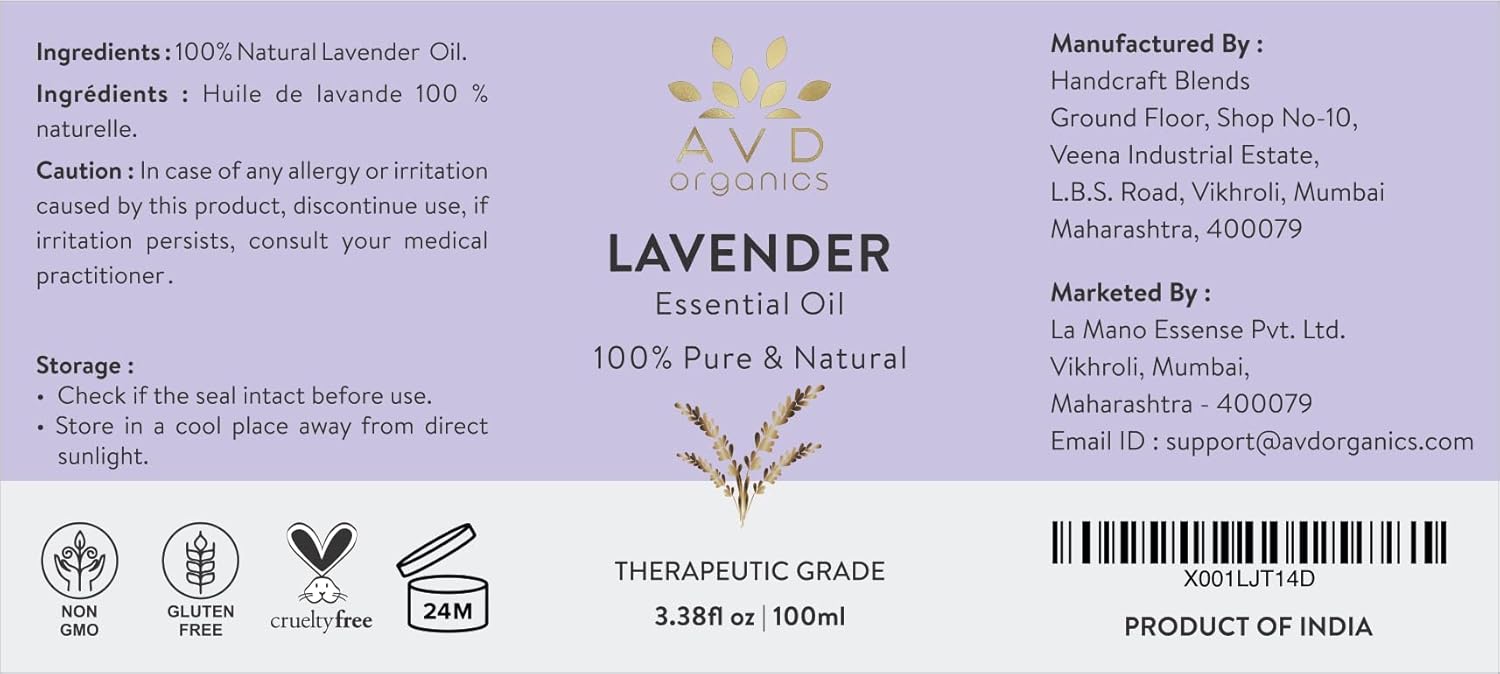 100% Pure & Natural: AVD Organics Lavender Essential Oil extracted by steam distillation of Lavender flower and and free from toxins and additives. Absolutely perfect and safe for Vegans as well