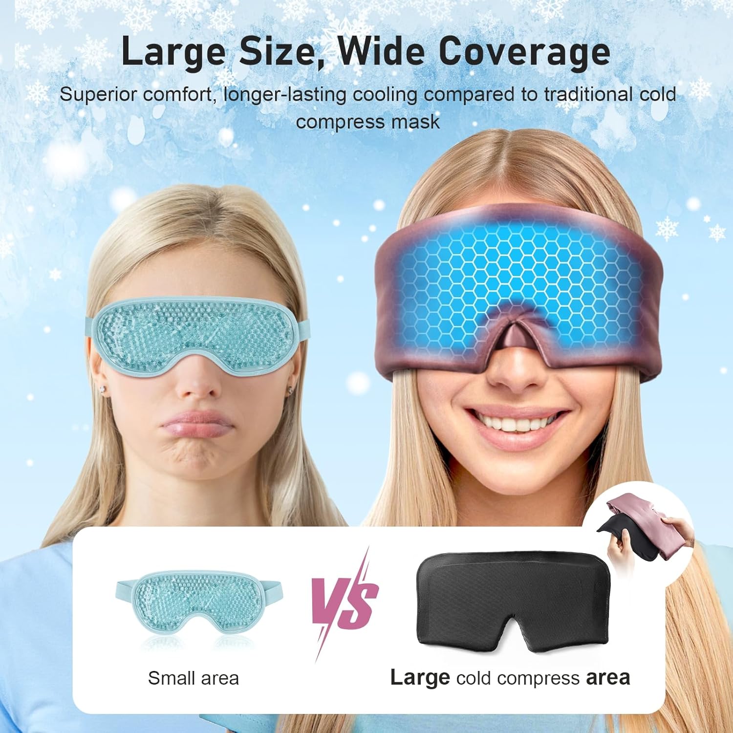 Reusable and convenient: The ice gel pack remains soft after freezing for 2 hours, offering relief from puffiness, eye fatigue, dark circles, headaches, and migraines. Its large compress area ensures broad coverage without pressure on the eyes