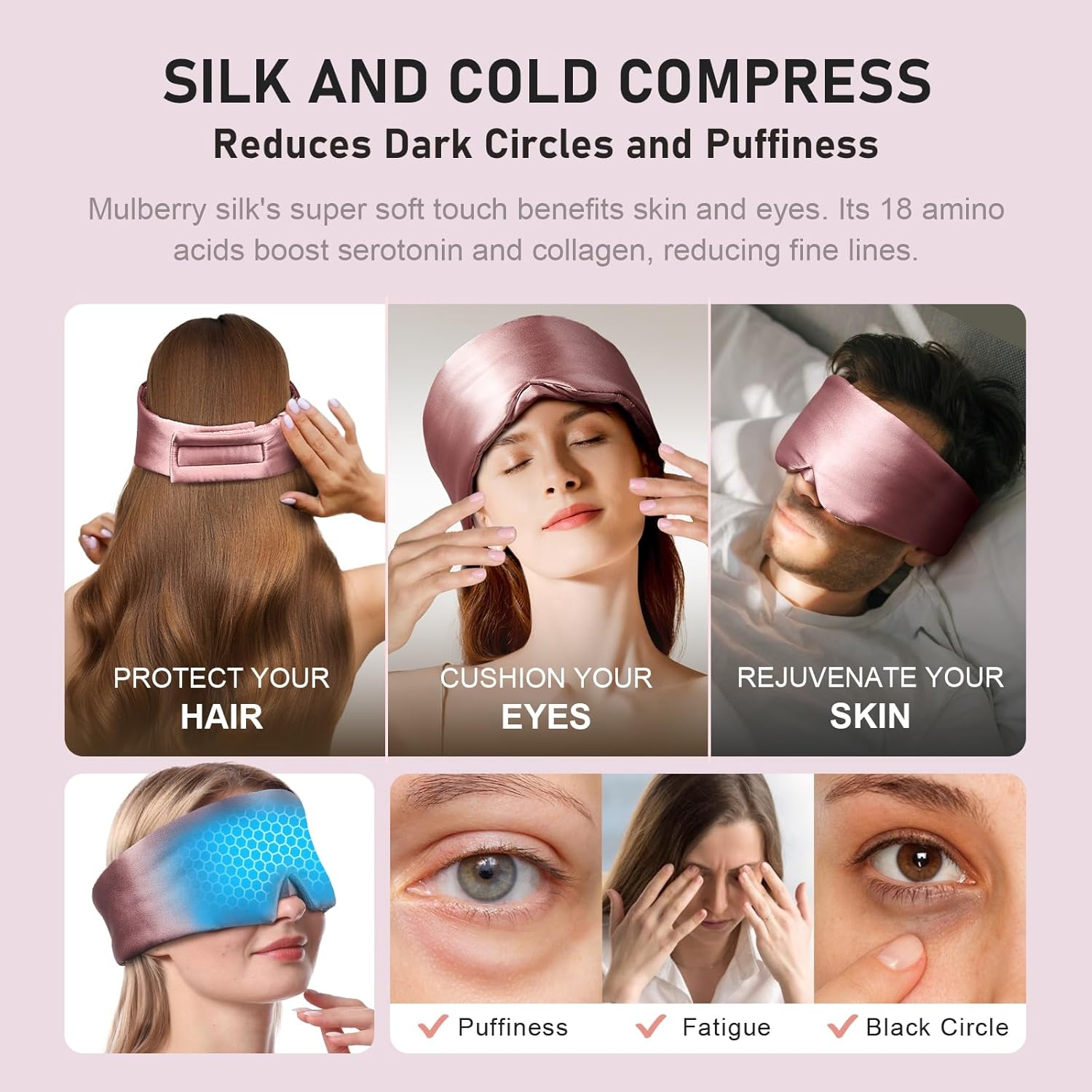 Dual-Purpose Silk Eye Mask: Enjoy silk-soft sleep while maintaining youthful skin, or use with the gel ice pack for 10 minutes of cooling relief that reduces puffiness and dark circles