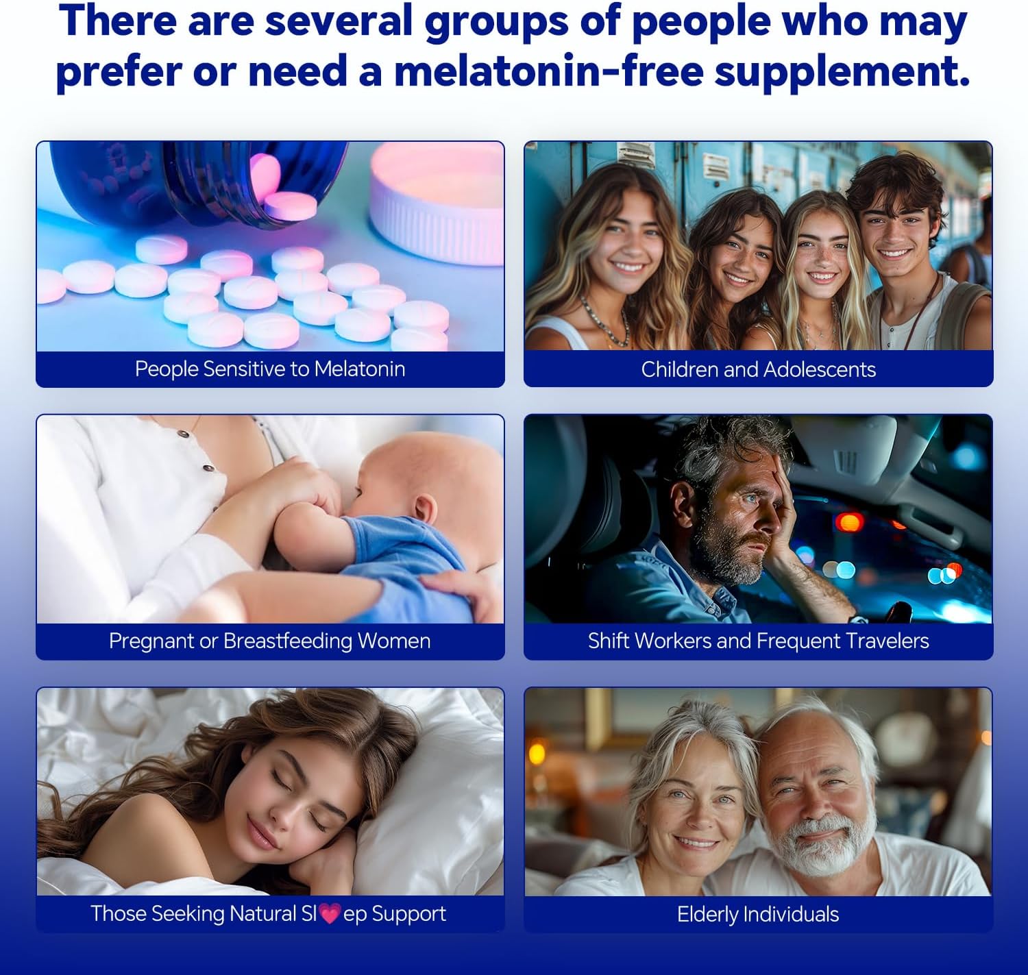 🌛Melatonin-Free Sleep Aid: Say goodbye to groggy mornings! Our melatonin-free formula supports a restful night’s sleep without the next-day drowsiness. Sweet dreams guaranteed! With an effective formula to promote natural zz💗z.Our melatonin-free gummies are your best choice! 5-HTP, is a precursor to serotonin, is converted into melatonin that is involved in regulating natural Zz💗z cycle. Combines L-Tryptophan, which can increase the concentration of serotonin in the brain, promote the formation of melatonin for better zz💗z.