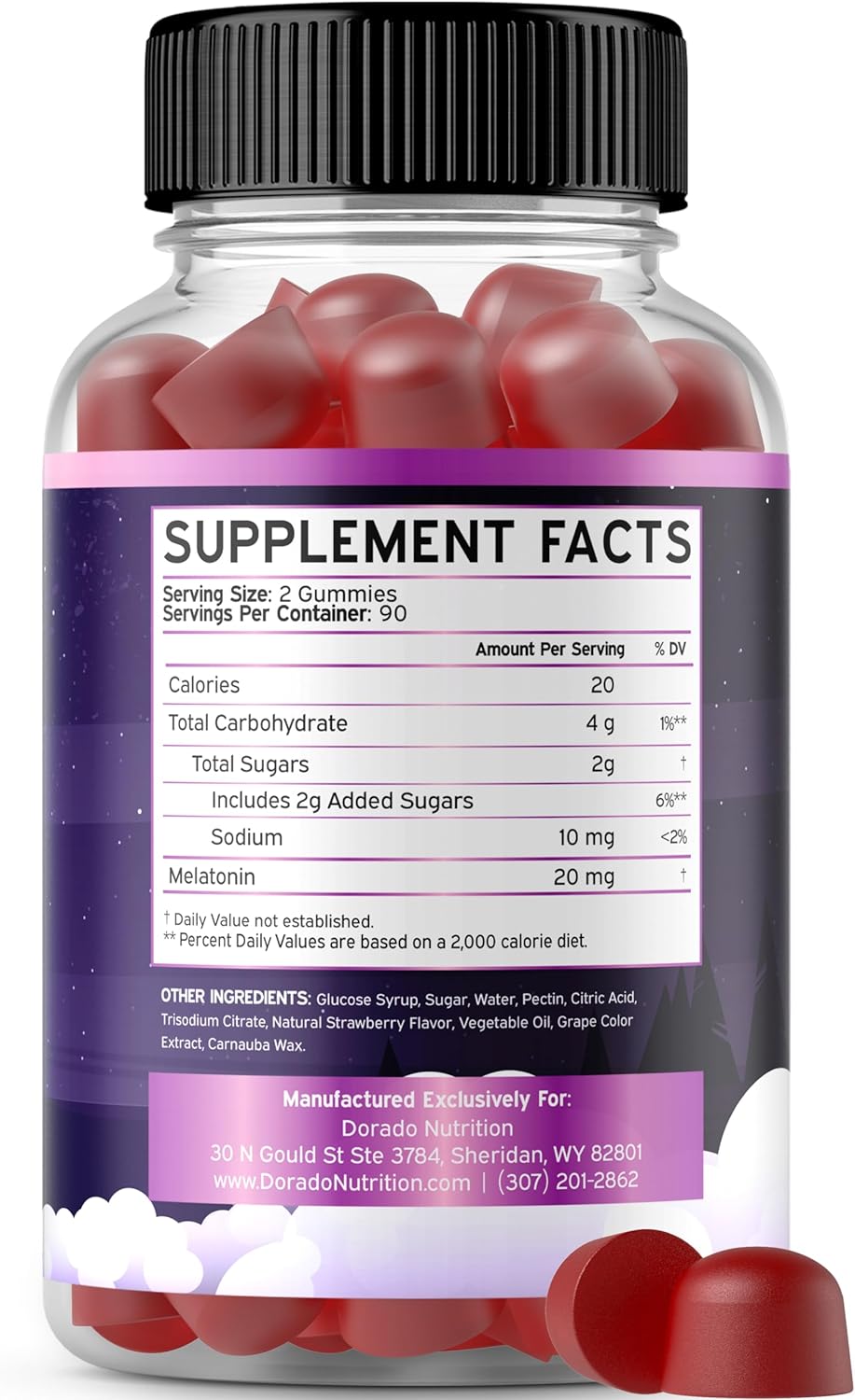 MELATONIN GUMMIES 20 MG FOR ADULTS – POTENT DOSE Each Of Our Adult Melatonin Gummies Has 20 mg of Maximum Strength Melatonin which is Optimum And Effective Dosage. Fall asleep faster and wake up refreshed with our adult melatonin gummies