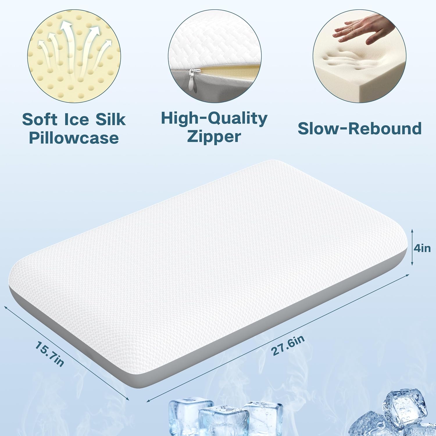 Suitable Size and Height: The height of our bed pillow 70*40*10cm (27.5*16*4in ) can relieve neck pain, suitable for Side/Back/Prone/low pillow/Stomach sleepers. The contour pillow naturally fits your spine, provides proper support for spinal alignment and helps relieve pressure. Effective cooling gel technology for enhanced breathability!