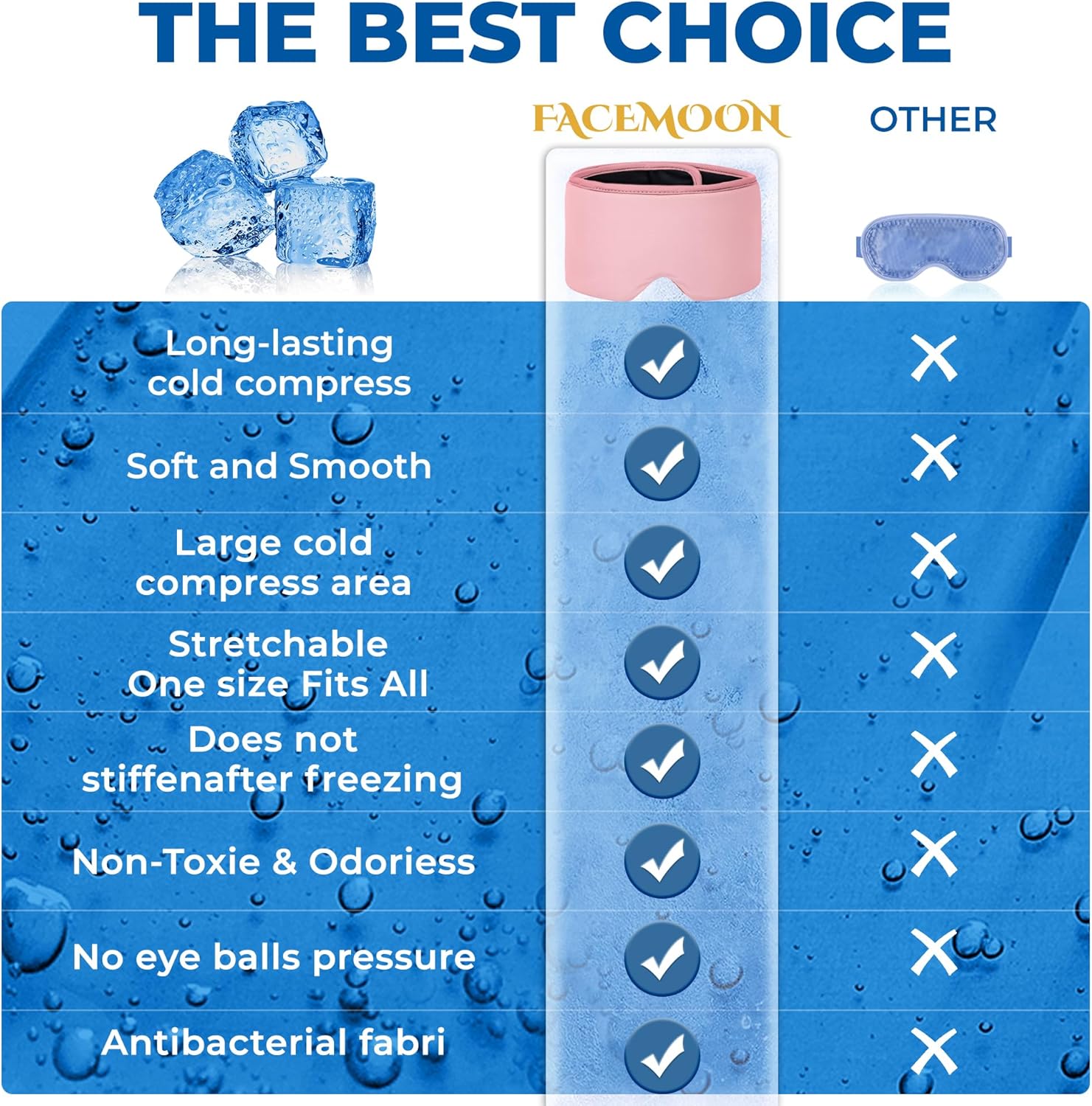 Long-Lasting Ice Cooling Comfort: FACEMOON cooling eye mask stays cold longer, thanks to thicker high-quality medical-grade gel. It effectively soothes puffy eyes, dark circles, headaches, and migraines.