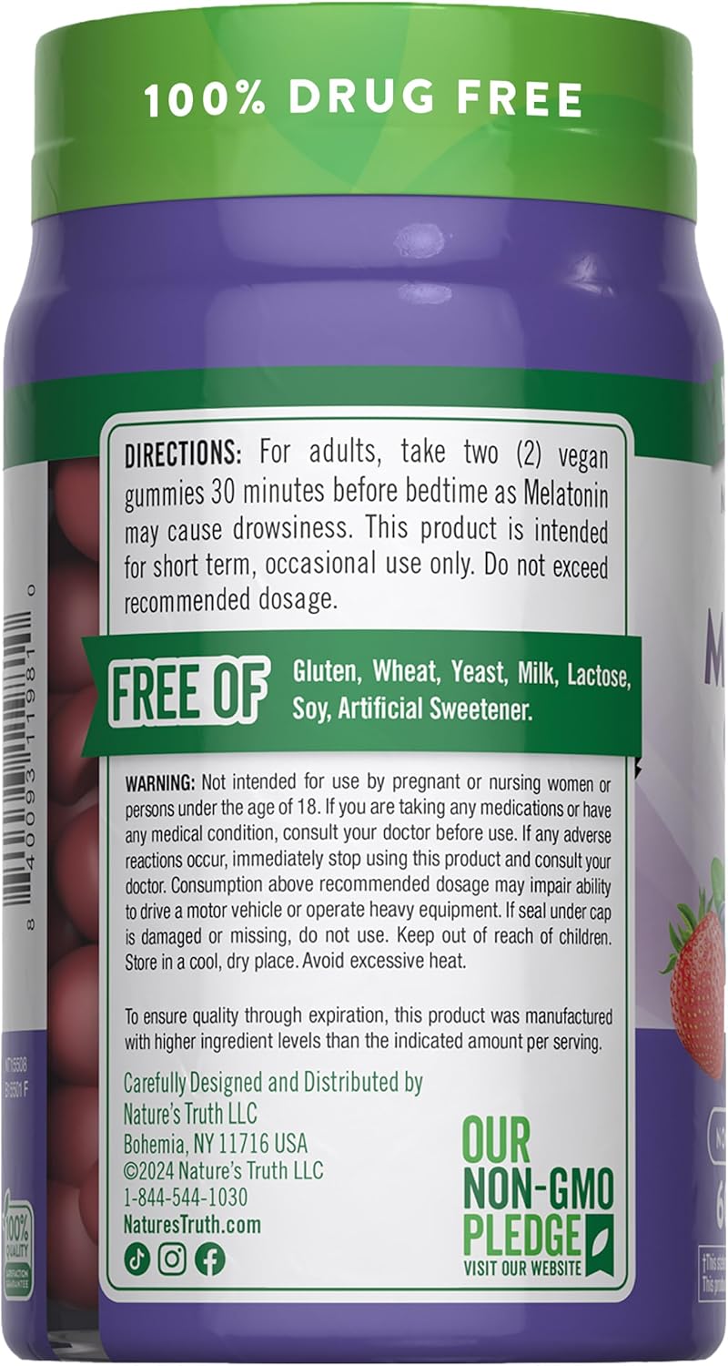 VEGAN GUMMIES: Delicious mixed berry flavored gummies deliver 12 mg of Melatonin per serving