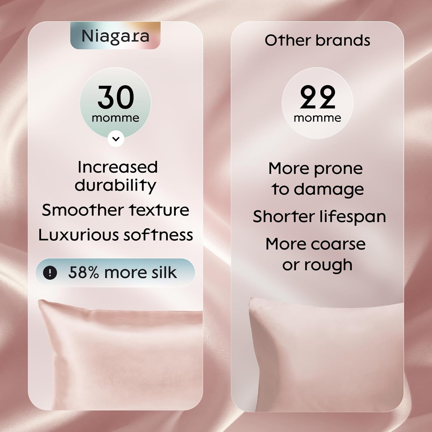 GENTLE ON HAIR AND SKIN:The grade 6A silk on each silk pillowcase for hair and skin has a smooth, soft surface, which minimizes friction on hair and skin, reducing the likelihood of hair breakage, split ends, and skin irritation.