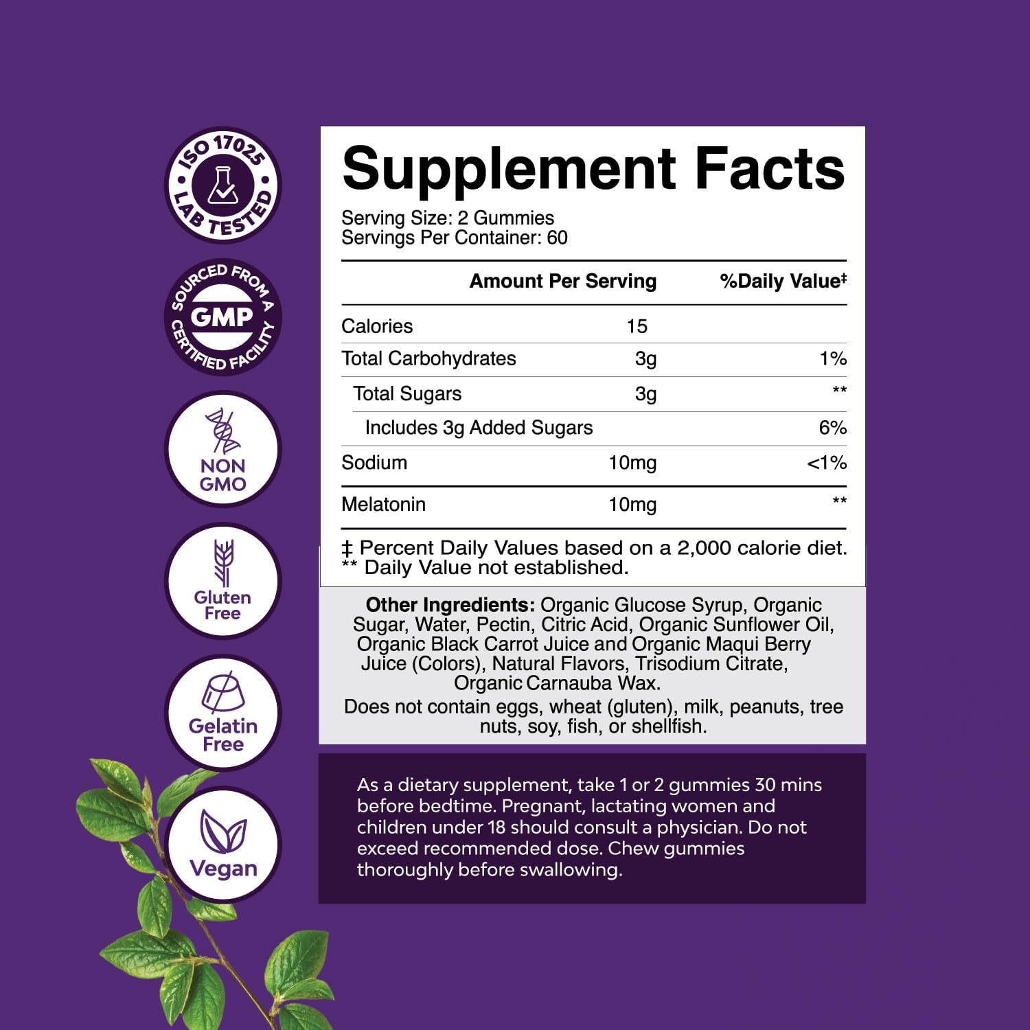 Potent and Clean Formula – Not all sleeping gummies for adults are created equally and we are proud to offer a 10mg melatonin gummy that is organic and carefully made with non-GMO vegan ingredients