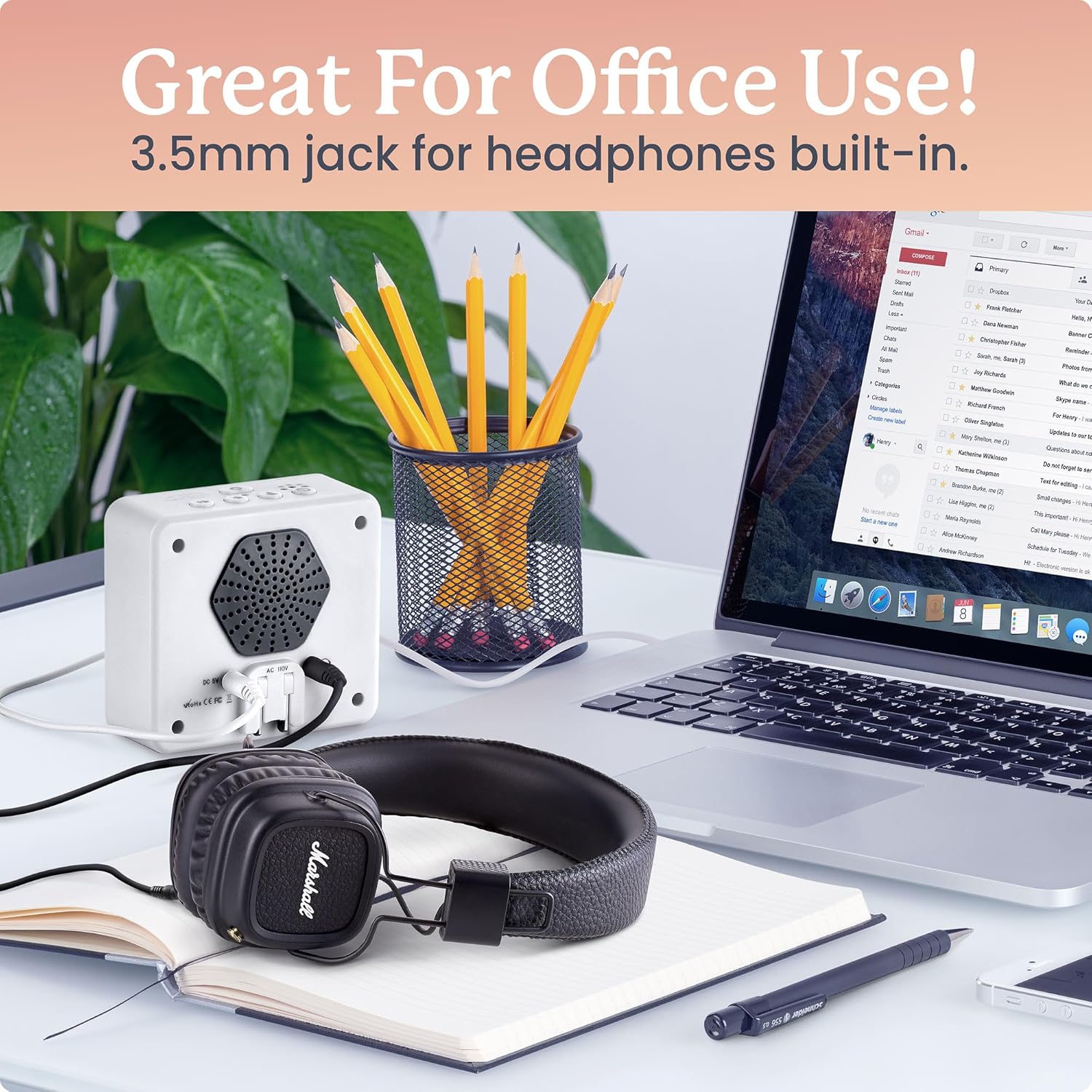 With a USB connection and headphone jack, our white noise machine is perfect for office use