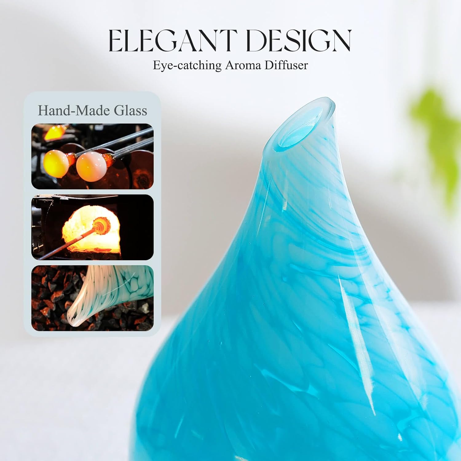 HIGH QUALITY AND SAFETY – BPA-free material with hand-blown glass globe. After you drop several essential oils they will release a cool mist to fill everywhere.