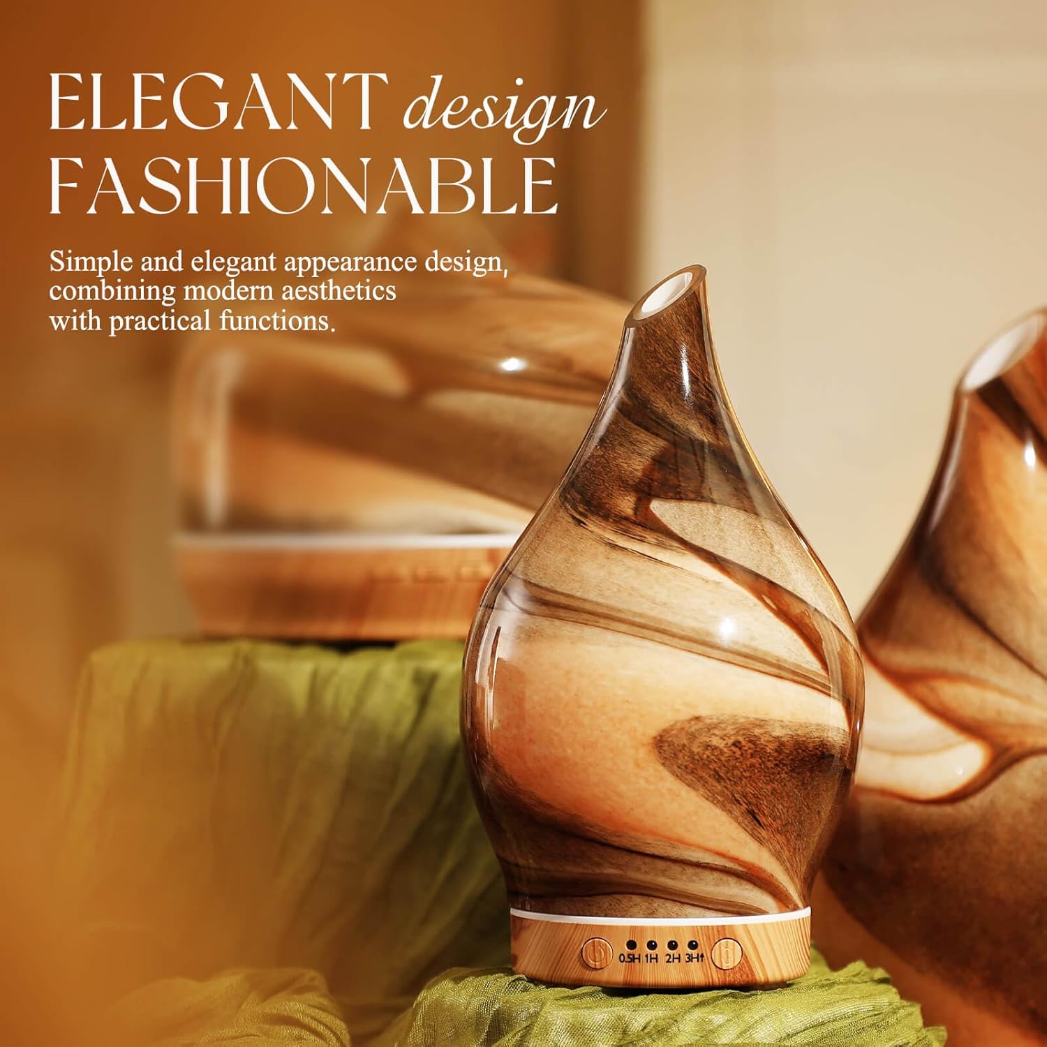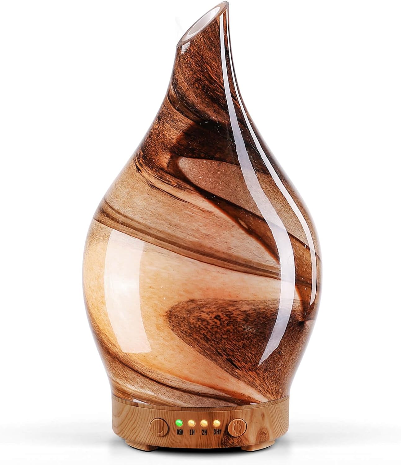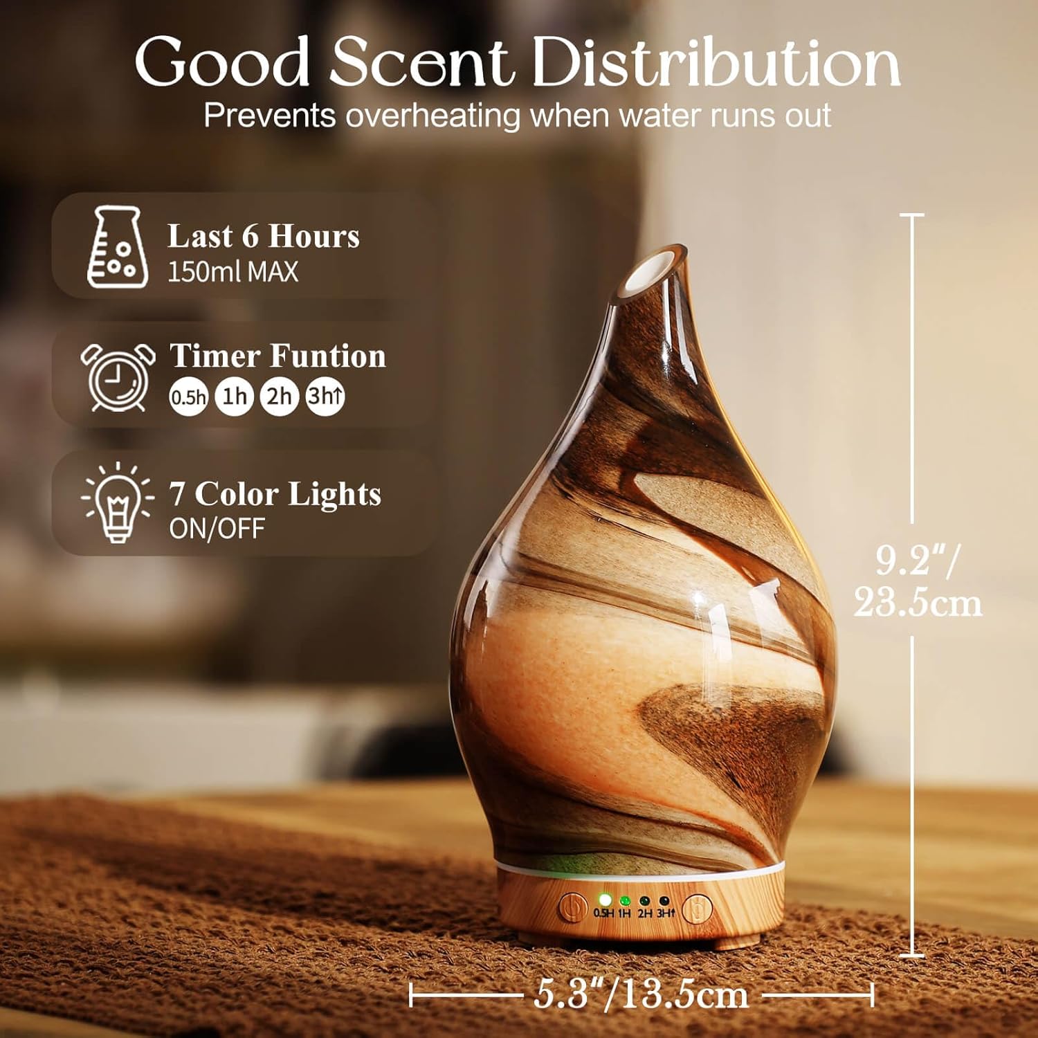 UNIQUE ART DECORATIVE DESIGN – Our 150ml glass essential oil diffuser has an elegant starry pattern glass cover and wood grain decorative base. It is very suitable for your bedroom, living room, children’s room, study room, office, and yoga room.