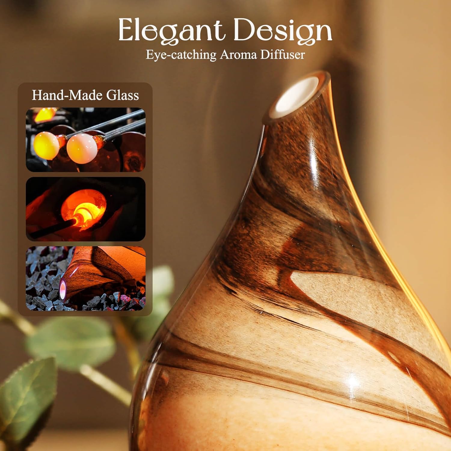 HIGH QUALITY AND SAFETY – BPA-free material with hand-blown glass globe. After you drop several essential oils they will release a cool mist to fill everywhere.