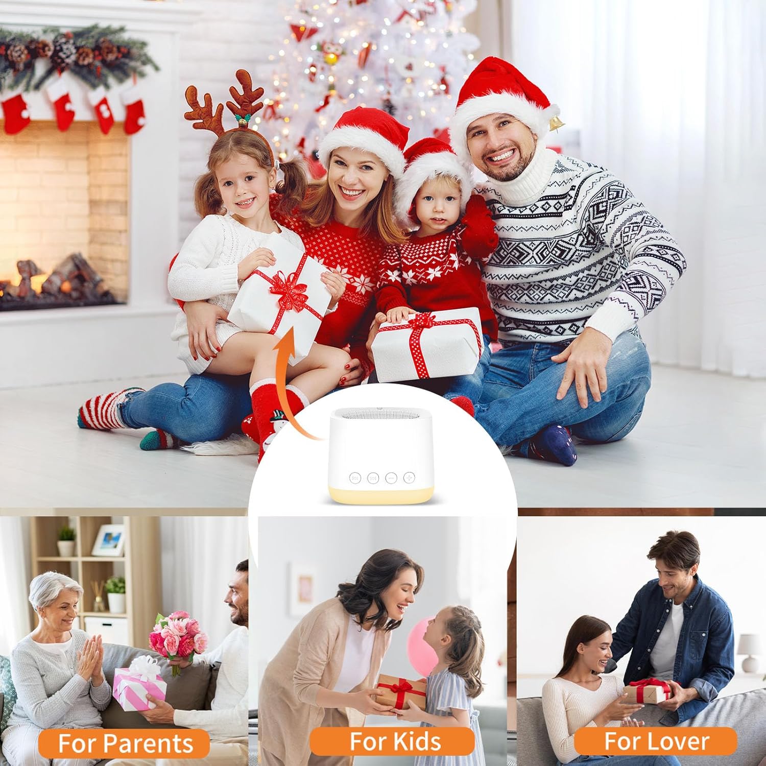 Products: Our selection of white noise machines and lights subtly elevates your space, setting a stage for serenity and renewal.