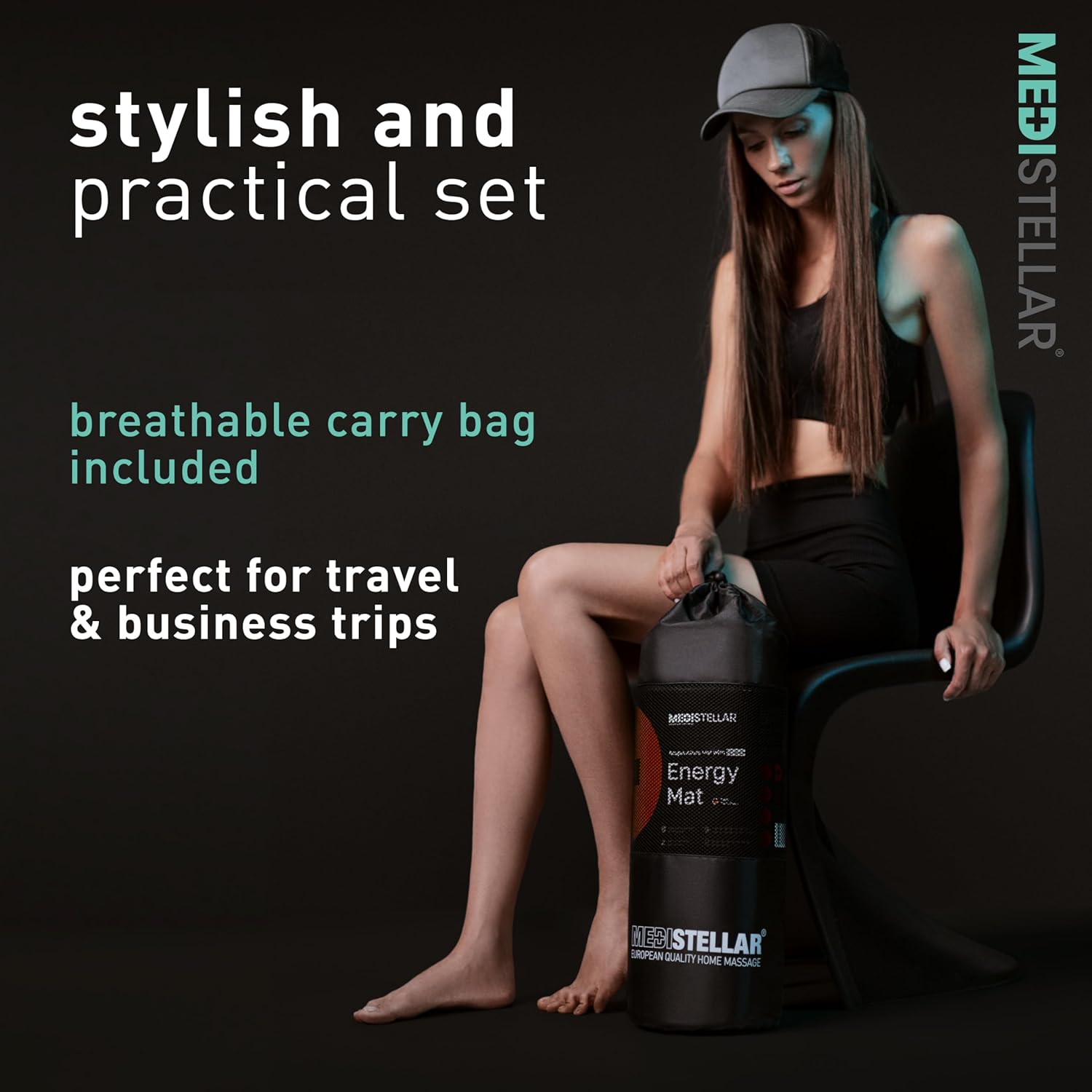 ✚ Anywhere, Anytime Wellness ✚ Lightweight and portable, the Medistellar Energy Mat includes a breathable carry bag for easy transport. Use it at home, in the office, or while traveling. Take relaxation and relief wherever life takes you—because wellness shouldn’t wait.