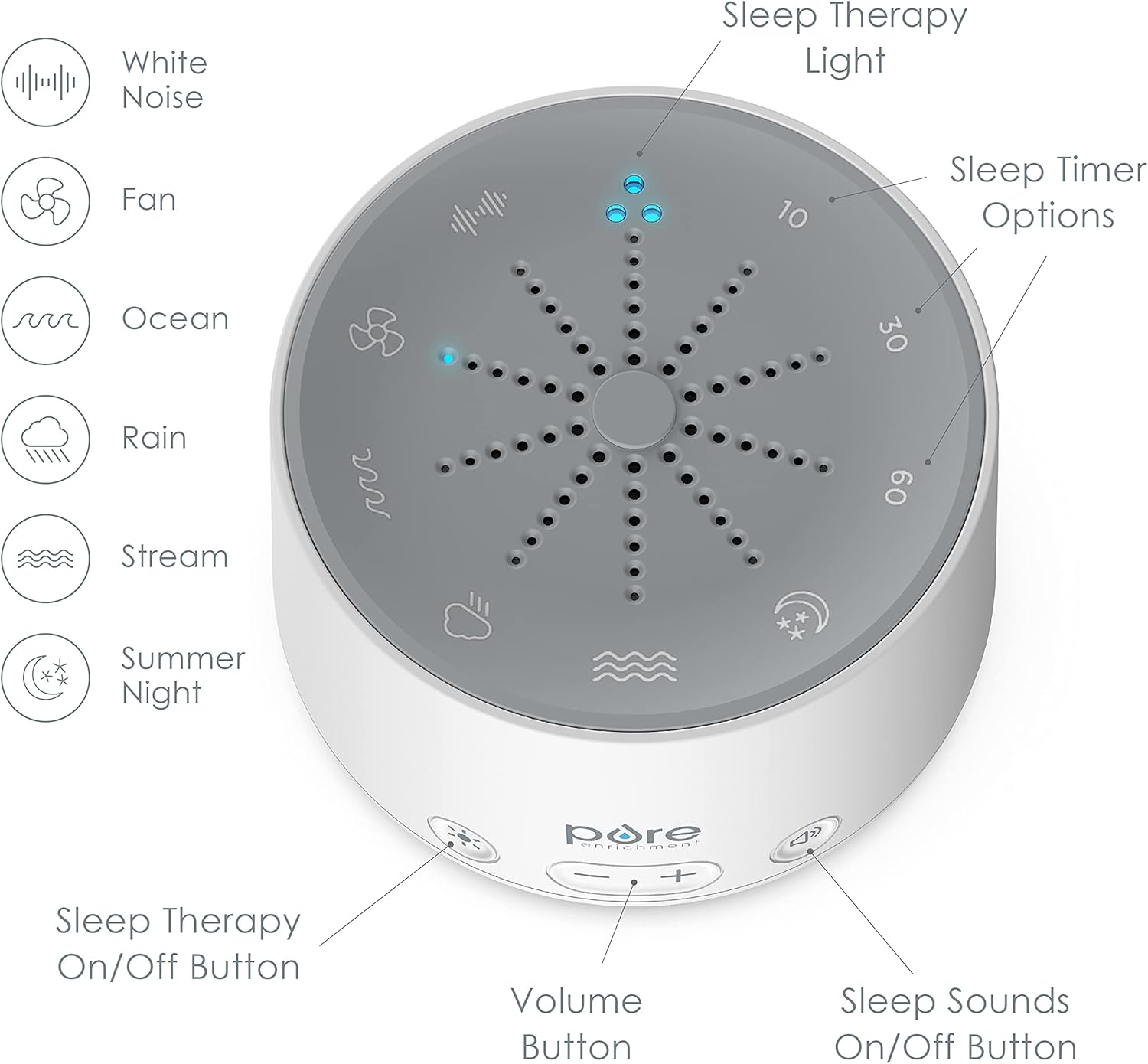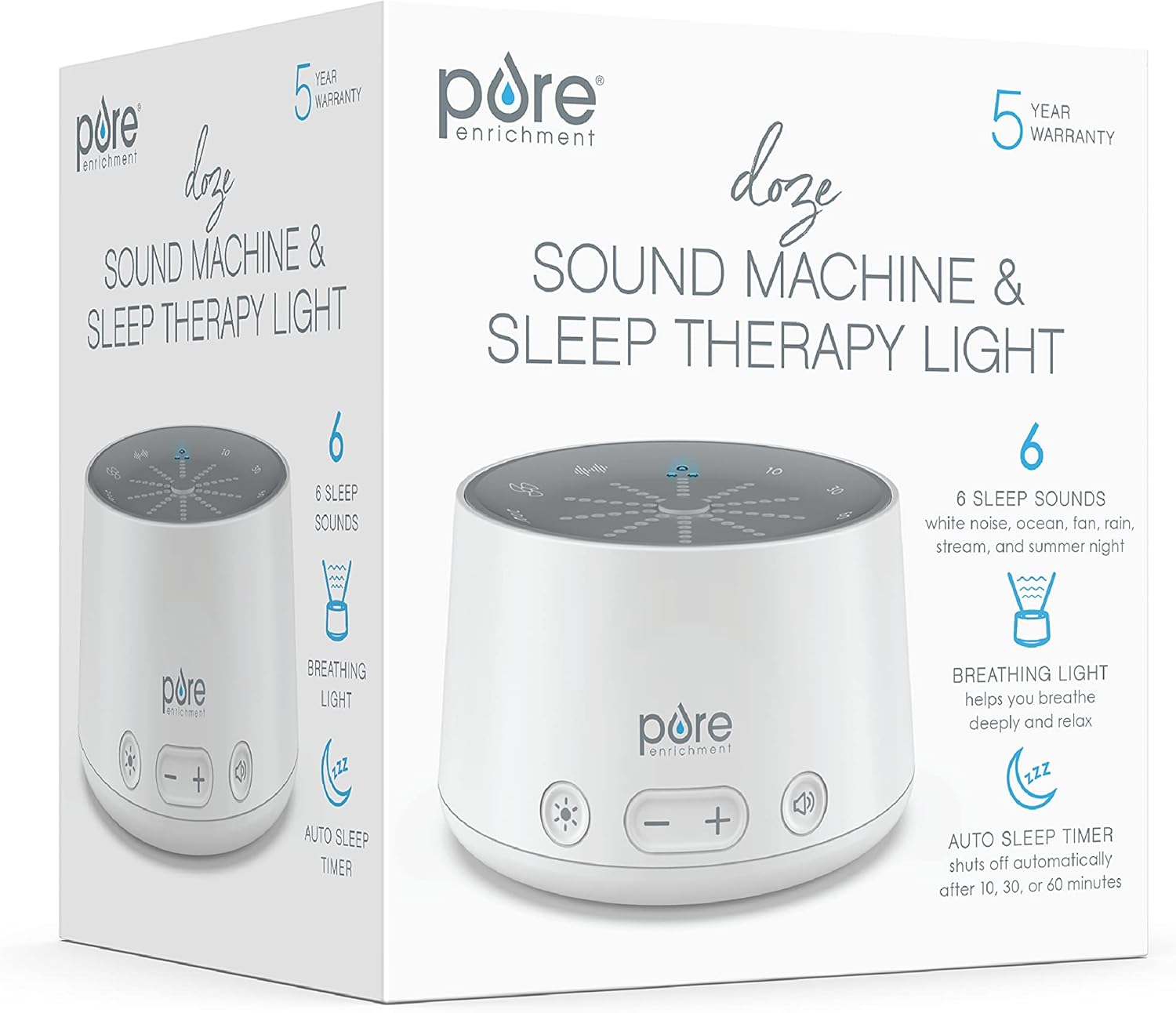 What You Get: Sound machine with sleep therapy light, AC adapter, and Pure Enrichment’s guaranteed 5-Year Manufacturer’s Warranty. Our customer support team provides daily quality service and peace of mind to millions worldwide all from a brand you can trust.