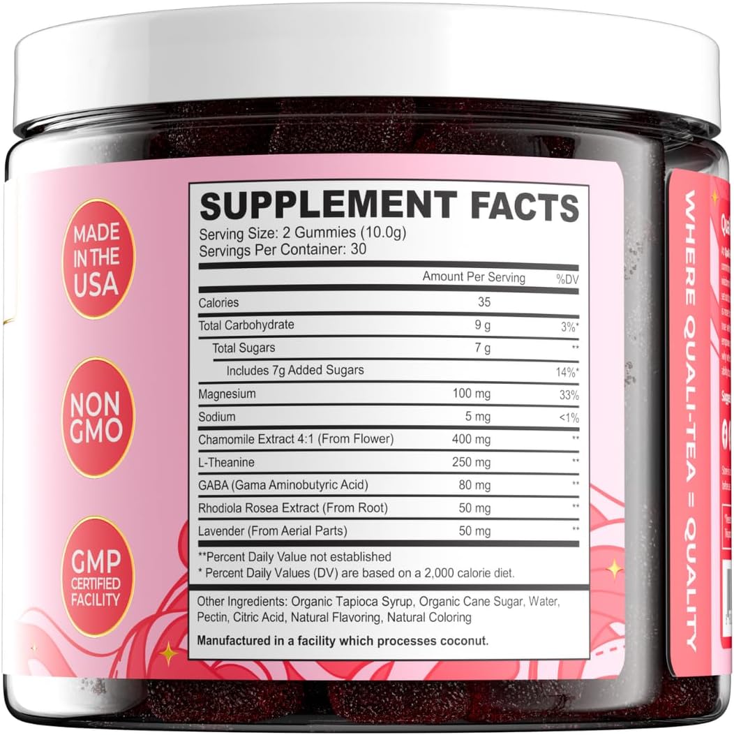 STRESS RELIEF – Say goodbye to stress with our Quali-Tea Stress Relief & Mood Support Gummies that help manage stress, support mood, and improve your focus & sleep, in which promotes a sense of calm and relaxation. Made with a blend of L Theanine, Magnesium Citrate, GABA, and Rhodiola Rosea, these gummies provide sleep support and stress support for your overall health.*