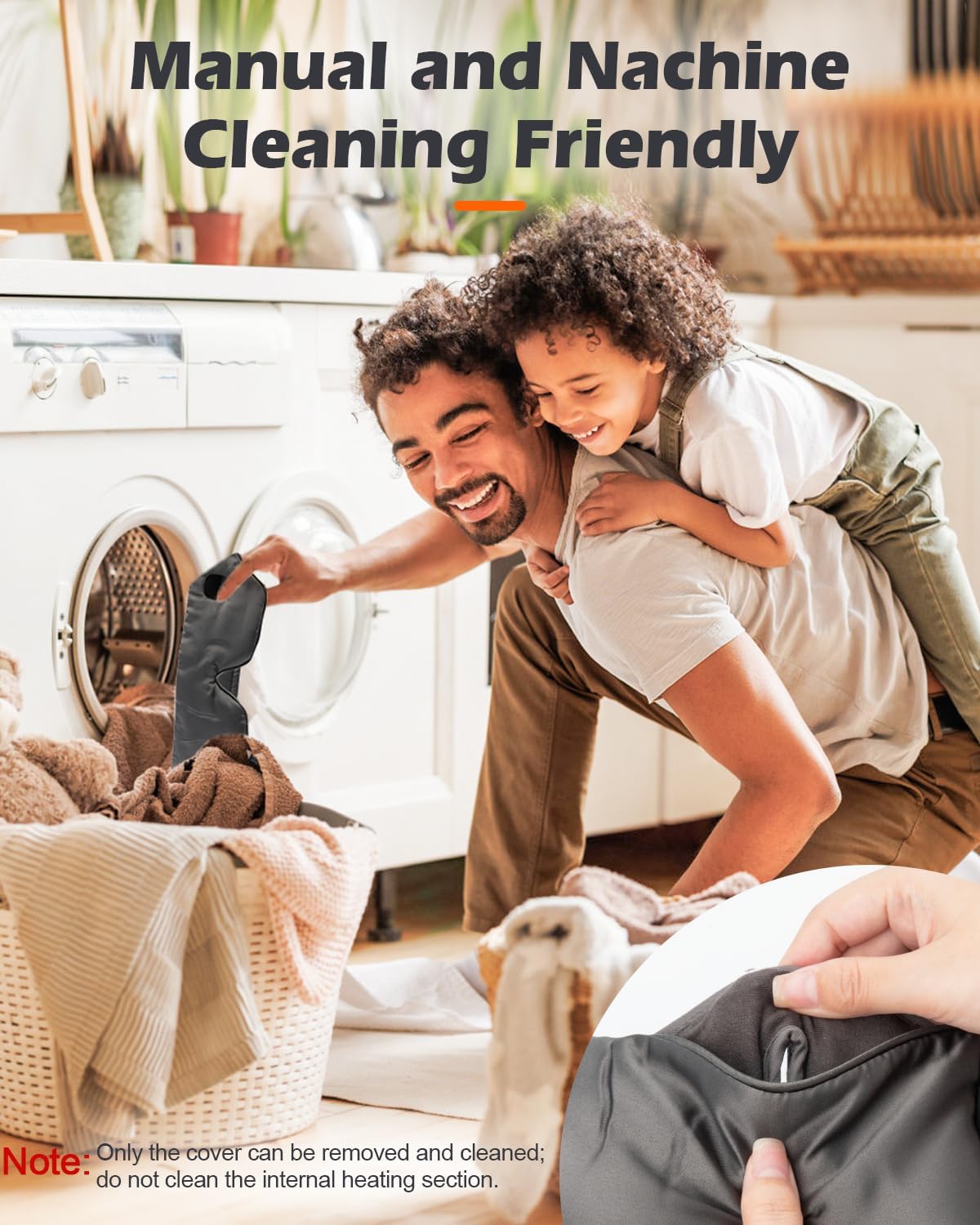 SOFT AND COMFORTABLE FABRIC: The detachable 100% silk cover provides luxurious softness and comfort. Hand-wash it to keep it fresh, while the breathable cotton fabric of the mask pampers your delicate eye area. Note that only the outer satin cover is washable; the internal heating mechanism should not be washed.