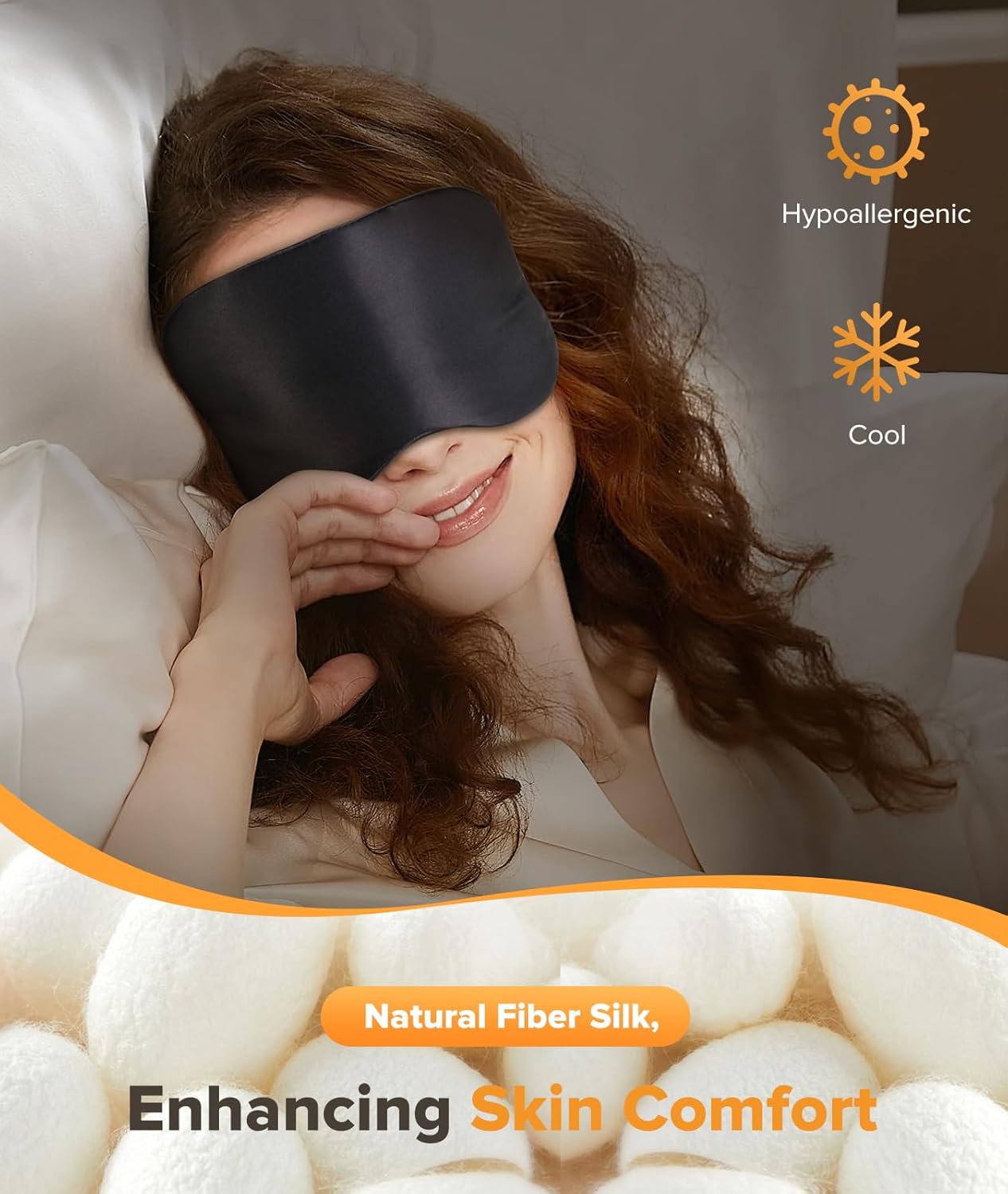Icy Cool Mulberry Silk Sleep Mask: The 0-pressure, bare-skin sensation is derived from our natural mulberry silk, making it ideal for sensitive skin. Compared to other materials, our eye sleeping mask is gentler on facial skin, minimizing irritation