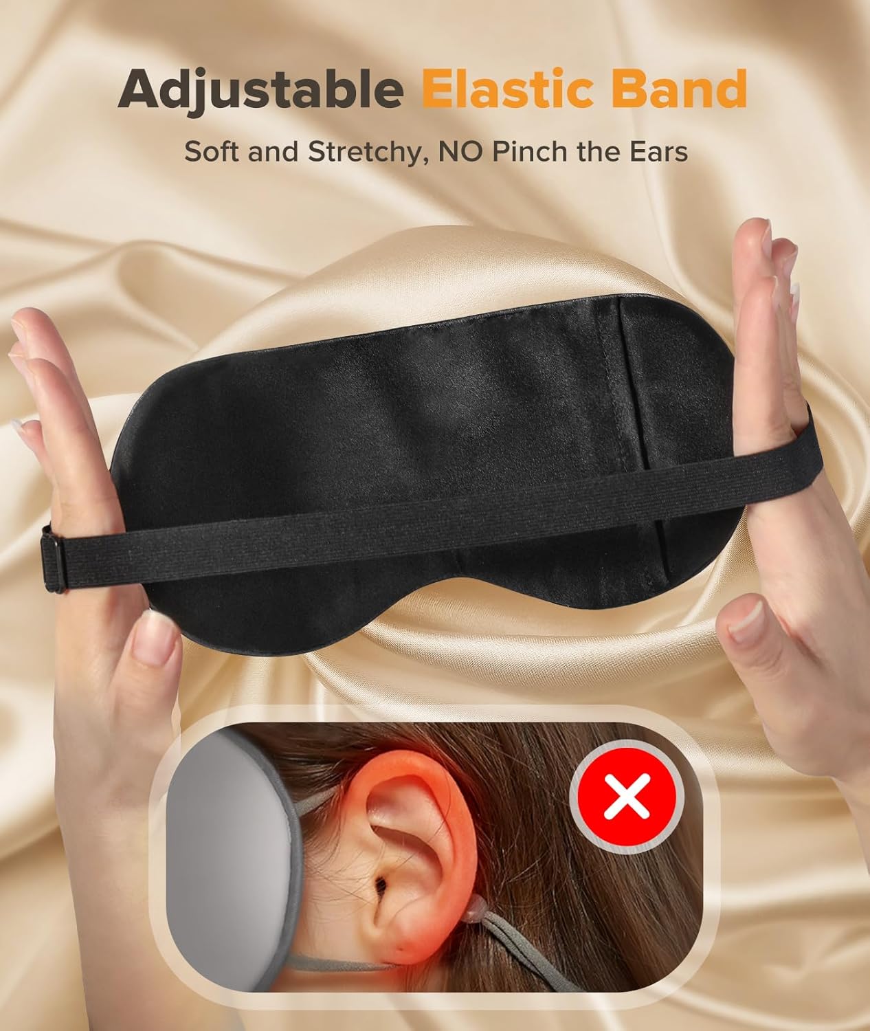 Gentle on Ears, Adjustable Strap: Our eye mask for sleeping doesn’t place added pressure on the ears; instead, it utilizes an elastic, adjustable strap that secures around the entire head, evenly distributing pressure for a comfortable and secure fit