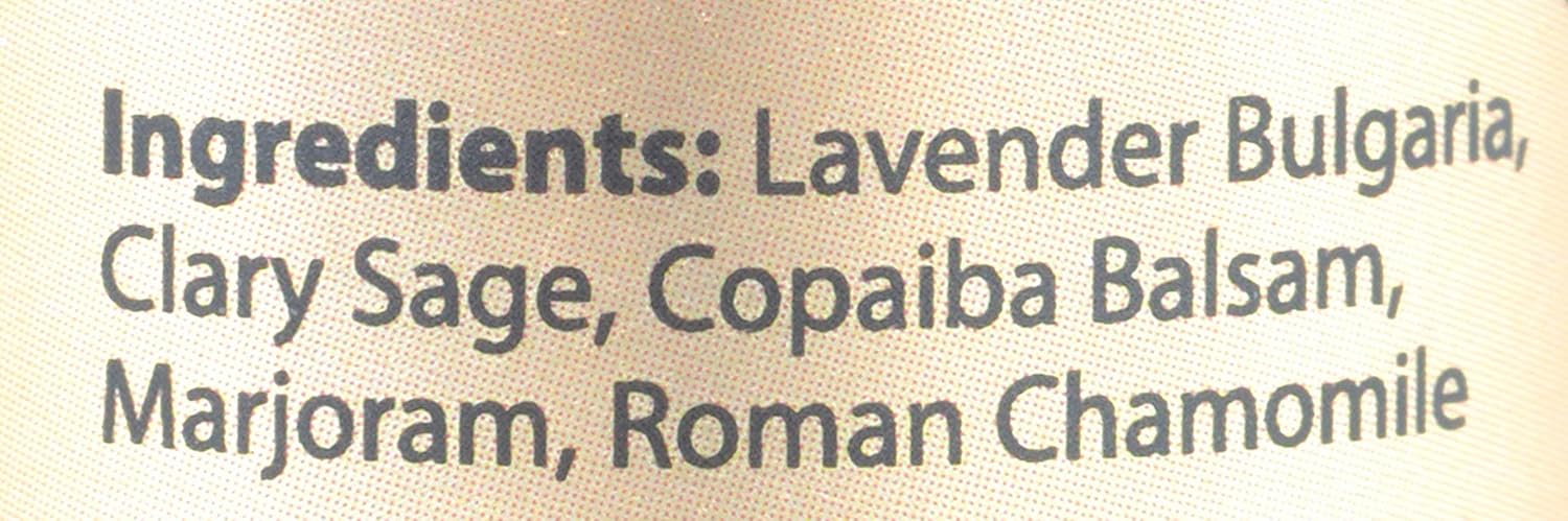 Ingredients : Lavender Bulgaria, Clary Sage, Copaiba Balsam, Marjoram, Roman Chamomile. All our oils are Pure, Natural, Unfiltered, Undiluted, Non-additives, Non-fillers, Non-synthetics, GMO-free, Best for Aromatherapy & Scents